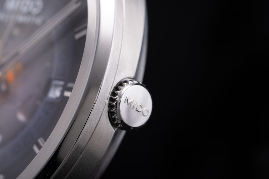 Hodinky Mido M021.407.18.411.00 mají pouzdro vyrobené z ušlechtilé oceli 316L, které doplňuje nylonový řemínek. V pouzdře spolehlivě tiká švýcarský mechanický strojek Caliber 80 (základem je ETA C07.611) s automatickým nátahem. Ten pracuje na frekvenci 21600 polokmitů za hodinu, disponuje 25 kameny a především prodlouženou rezervou chodu 80 hodin. Činnost tohoto strojku lze pozorovat průhledným dýnkem a také průhledným číselníkem. Na pozici 3. hodiny najdeme praktický ukazatel data.
