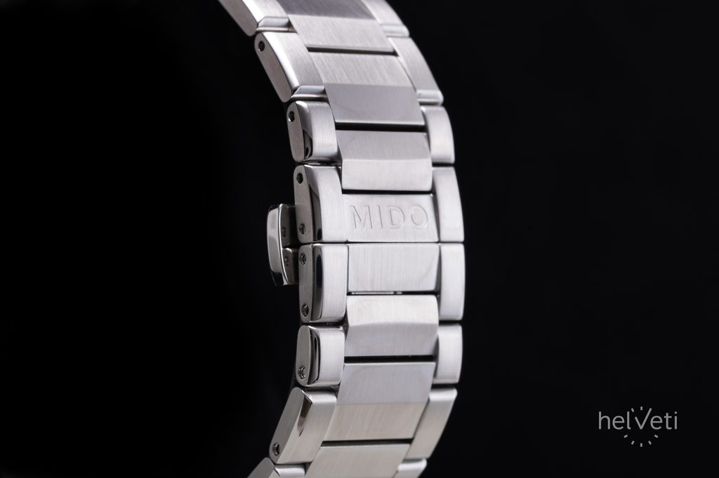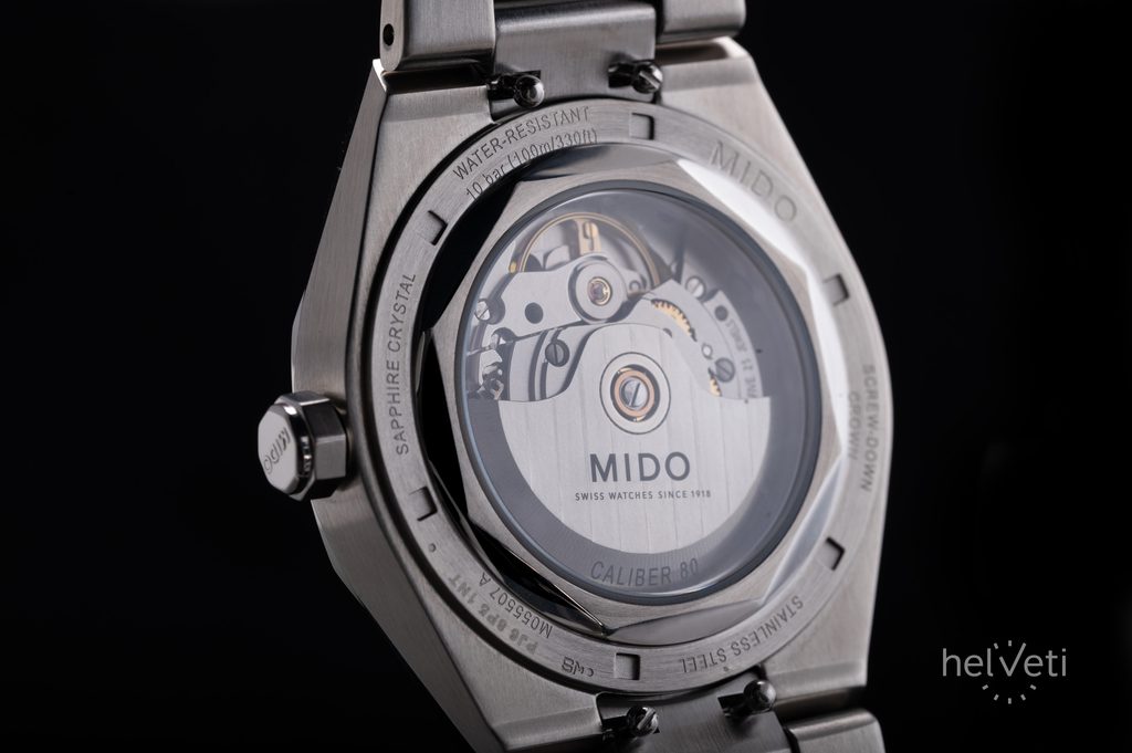 Hodinky Mido M055.507.11.041.00 mají pouzdro včetně integrovaného náramku vyrobené z ušlechtilé oceli 316L. V pouzdře spolehlivě tiká švýcarský mechanický strojek Mido Caliber 80 (základem je ETA C07.611) s automatickým nátahem. Ten pracuje na frekvenci 21600 polokmitů za hodinu, disponuje 25 kameny a především prodlouženou rezervou chodu 80 hodin. Činnost tohoto strojku lze pozorovat průhledným dýnkem. Na pozici 3. hodiny najdeme praktický ukazatel data.