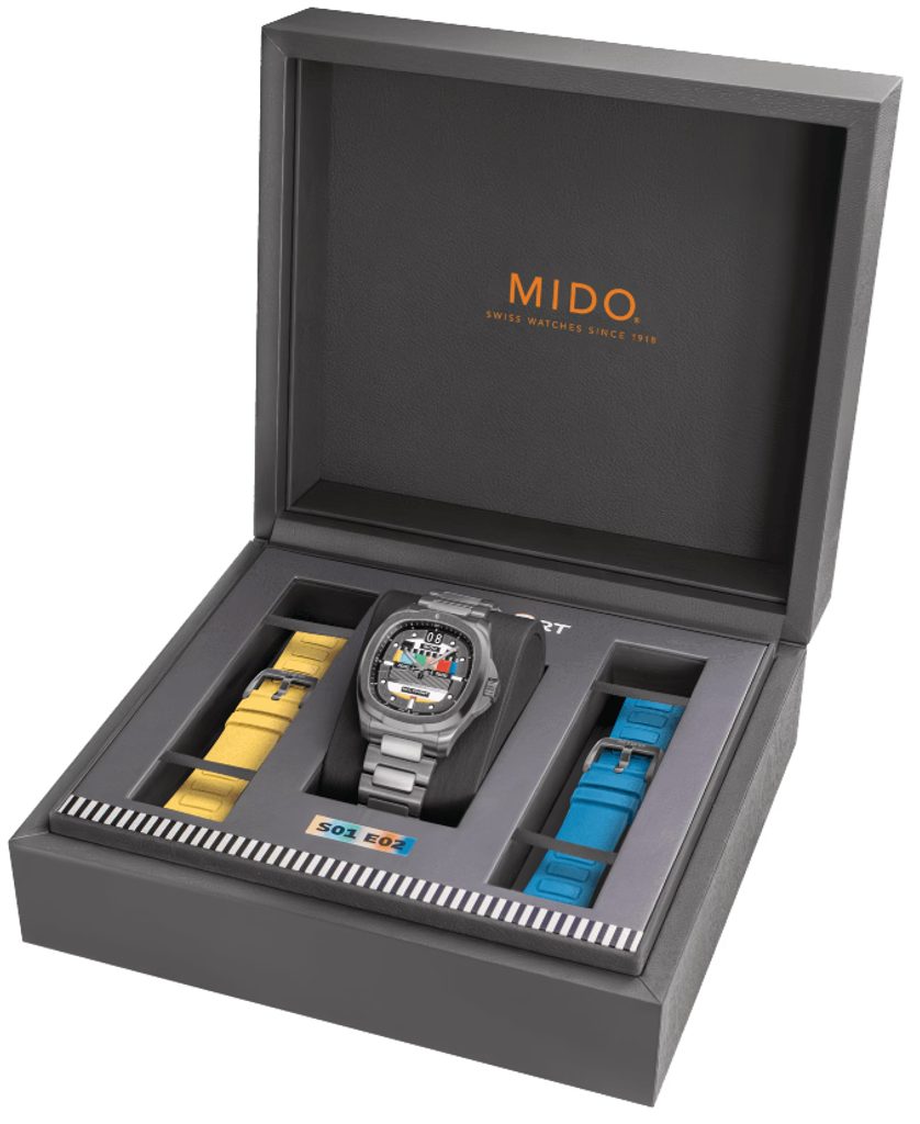 Hodinky Mido M049.526.33.081.01 mají pouzdro včetně náramku vyrobené z ušlechtilé oceli 316L s PVD úpravou. Náramek je opatřen rychlostěžejkami a proto je možná jeho snadná výměna bez pomoci nástrojů. Součástí balení jsou 2 extra řemínky v žluté a modré barvě. V pouzdře spolehlivě tiká švýcarský mechanický strojek Caliber 80 Big Date (základem je ETA C07.651) s automatickým nátahem. Ten pracuje na frekvenci 21600 polokmitů za hodinu, disponuje 25 kameny a především prodlouženou rezervou chodu 80 hodin. Činnost tohoto strojku lze pozorovat průhledným dýnkem. Na pozici 12. hodiny najdeme praktický velký ukazatel data - tzv. Big Date.