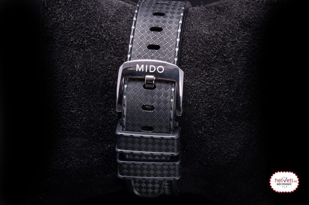 Hodinky Mido M026.830.17.421.00 mají pouzdro vyrobené z ušlechtilé oceli 316L, které doplňuje pryžový řemínek. V pouzdře spolehlivě tiká švýcarský mechanický strojek Caliber 80 (základem je ETA C07.621) s automatickým nátahem. Ten pracuje na frekvenci 21600 polokmitů za hodinu, disponuje 25 kameny a především prodlouženou rezervou chodu 80 hodin. Na pozici 3. hodiny najdeme praktický ukazatel data a dne v týdnu. K měření časových úseků lze využít jednosměrně otočnou potápěčskou lunetu.