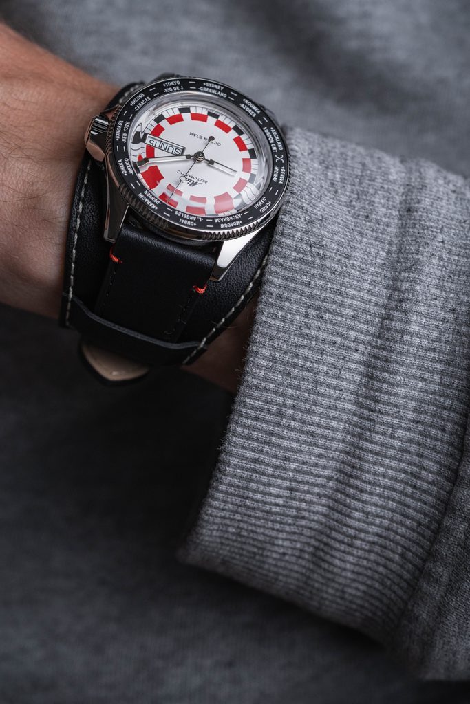Hodinky Mido M026.830.16.030.00 mají pouzdro vyrobené z ušlechtilé oceli 316L, které doplňuje kožený řemínek s odnímatelnou podložkou. V pouzdře spolehlivě tiká švýcarský mechanický strojek Caliber 80 (základem je ETA C07.621) s automatickým nátahem. Ten pracuje na frekvenci 21600 polokmitů za hodinu, disponuje 25 kameny a především prodlouženou rezervou chodu 80 hodin. Na pozici 3. hodiny najdeme praktický ukazatel data a dne v týdnu. Obousměrně otočná luneta obsahuje označení světových měst a použít tak funkci Worldtimer. Otočením časové zóny ve které se nacházíte k aktuálnímu času zjistit čas v ostatních časových zónách.