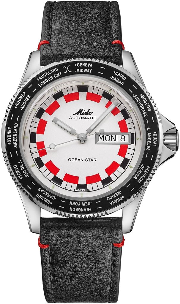 Švýcarské hodinky Mido Ocean Star Worldtimer M026.830.16.030.00 si své majitele získají především precizním zpracováním a atraktivním potápkovým designem. Jsou skvělým společníkem nejen ve vodě, ale i při běžném nošení. Cestovatelé pak ocení Worldtimer lunetu.