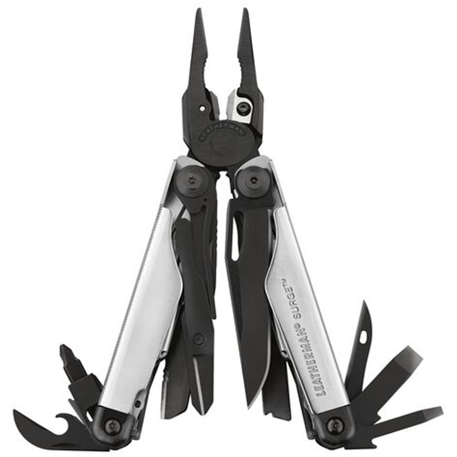 Multitool obsahuje totiž kromě tradičních multifunkčních kleští také otvírák na láhve a na konzervy, sadu šroubováků, šídlo s otvorem, dva nože z prémiové oceli 420HC, pilku s dvojřadými zuby, kterou můžete vyměnit za pilník s diamantovou vrstvou. Neocenitelným pomocníkem jsou ostré nůžky s pružinovým mechanismem. Leatherman SURGE je zkrátka kompletní sadou základního nářadí a neměl by chybět ve výbavě žádného řemeslníka, stavaře, či montéra. K dostání ve stříbrné, černé nebo stříbrno-černé barvě.