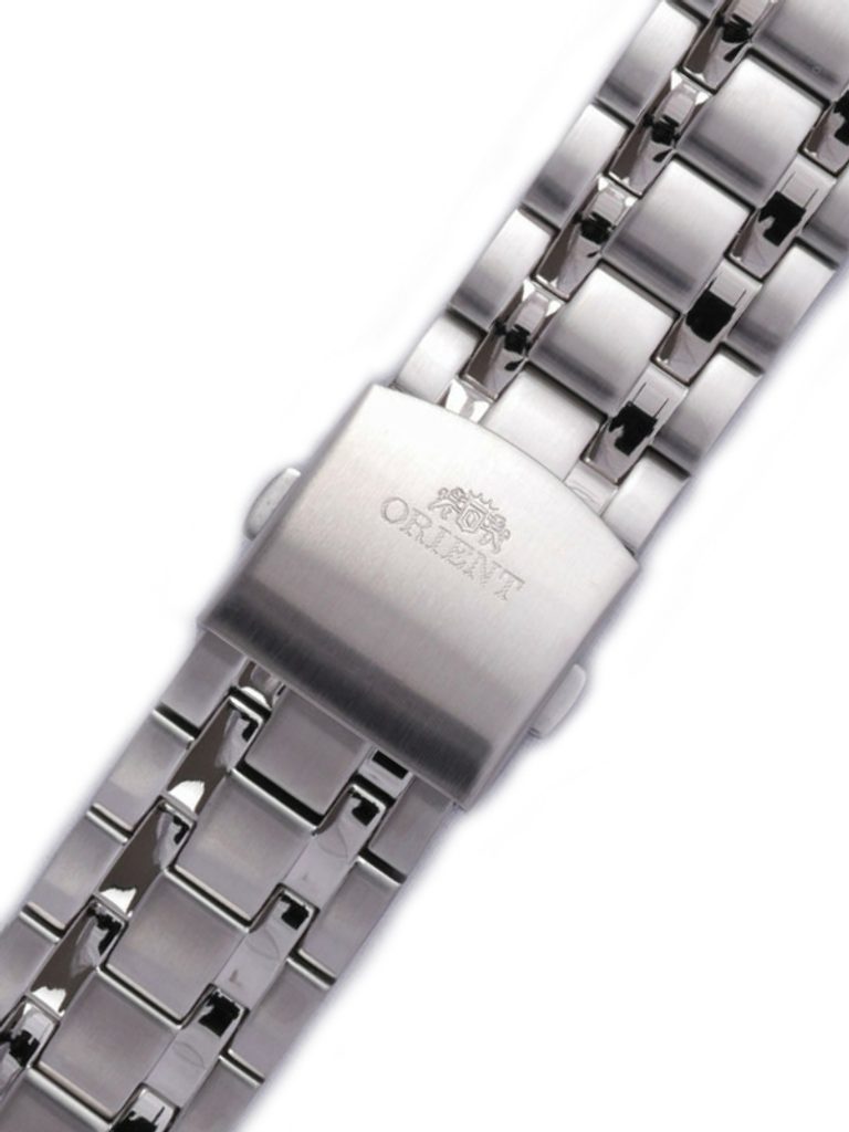 Originální ocelový náramek Orient o šířce 22 mm se může pochlubit praktickou překlápěcí sponou v ocelové barvě a nízkou náročností na údržbu. Jeho lesklý povrch navíc přidá hodinkám nádech elegance.