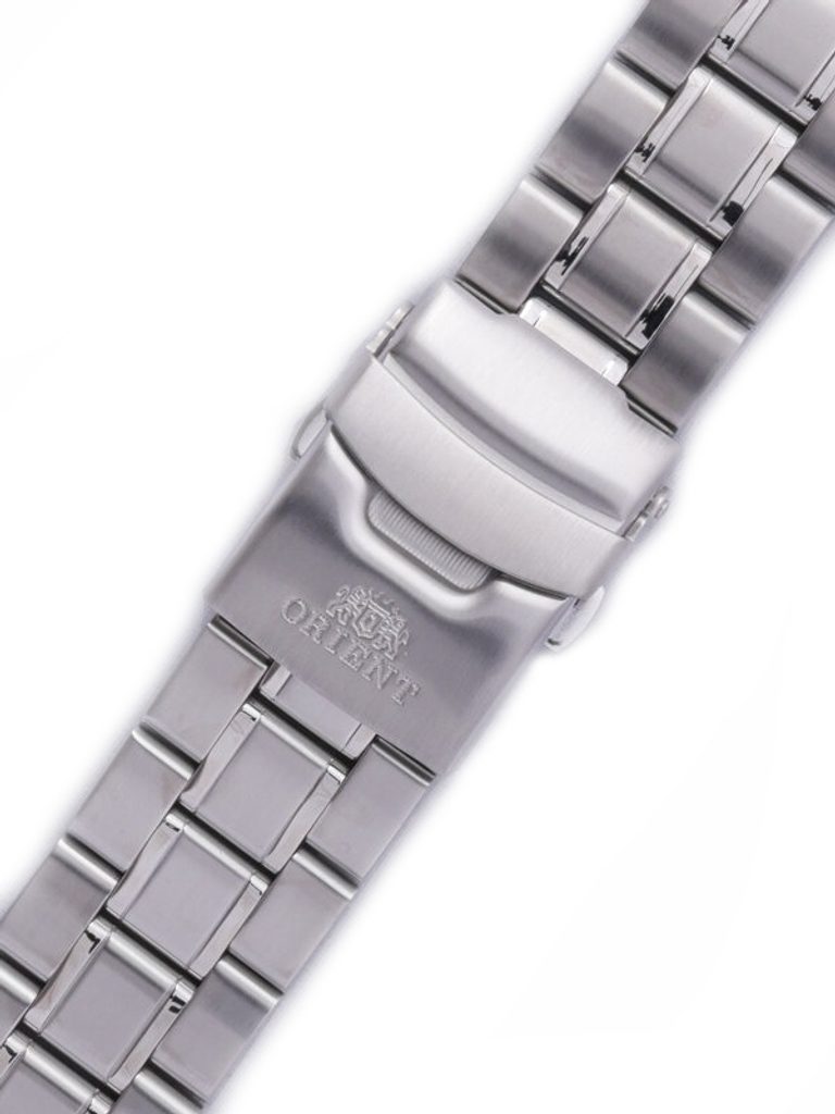 Originální ocelový náramek Orient o šířce 22 mm se může pochlubit praktickou překlápěcí sponou v ocelové barvě a nízkou náročností na údržbu. Jeho lesklý povrch navíc přidá hodinkám nádech elegance.