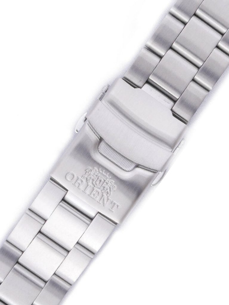Originální ocelový náramek Orient o šířce 22 mm se může pochlubit praktickou překlápěcí sponou v ocelové barvě a nízkou náročností na údržbu. Jeho lesklý povrch navíc přidá hodinkám nádech elegance.