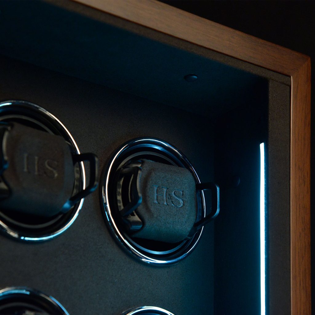 S technologií H&S Fin-Protect jsou hodinky uvnitř natahovače zajištěny moderním zámkem na otisk prstu. Přímo na natahovači lze naprogramovat až 5 otisků prstů a v případě potřeby je opět vymazat. Funkce H&S Smart-Sleep zajišťuje, že se rotory neotáčejí mezi 22.00 a 11.00 a napodobuje běžný rytmus nošení automatických hodinek. Rotory během spánkové fáze zcela utichnou, takže natahovač lze umístit i v ložnici, aniž byste se museli obávat rušení spánku. Inteligentní řídicí elektronika zajišťuje, že naprogramované otáčky denního intervalu jsou vždy udržovány, i když je aktivní fáze spánku.