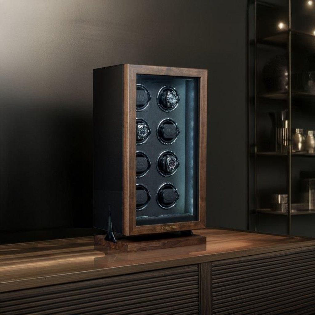 Natahovač Heisse & Söhne Triton 8 70019-238.142 pro 8 kusů mechanických hodinek s automatickým nátahem. Tento krásný model splňuje nejvyšší stardardy ohledně nové technologie a designu. Tělo natahovače je vyrobeno ze dřeva, dvířka jsou opatřena minerálním sklem.