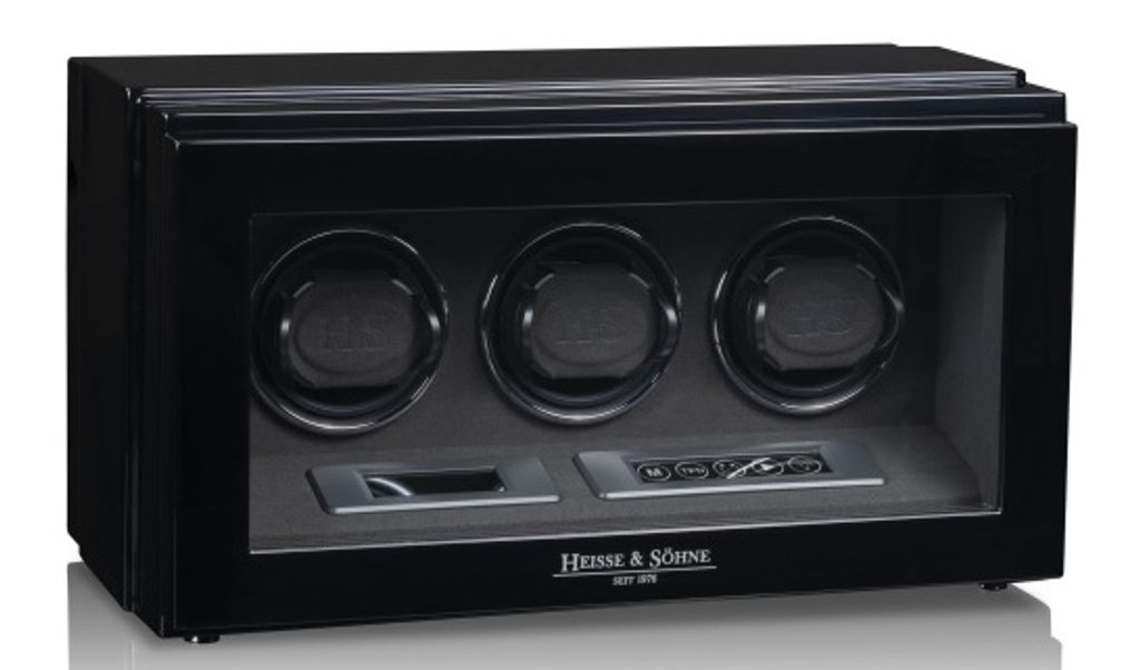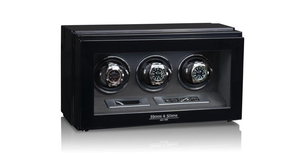 Natahovač Heisse & Söhne Watch Master 3 70019-242.142 pro 3 kusy mechanických hodinek s automatickým nátahem. Tento krásný model splňuje nejvyšší stardardy ohledně nové technologie a designu. Tělo natahovače je vyrobeno ze dřeva v černém piano lesku, dvířka jsou opatřena minerálním sklem.