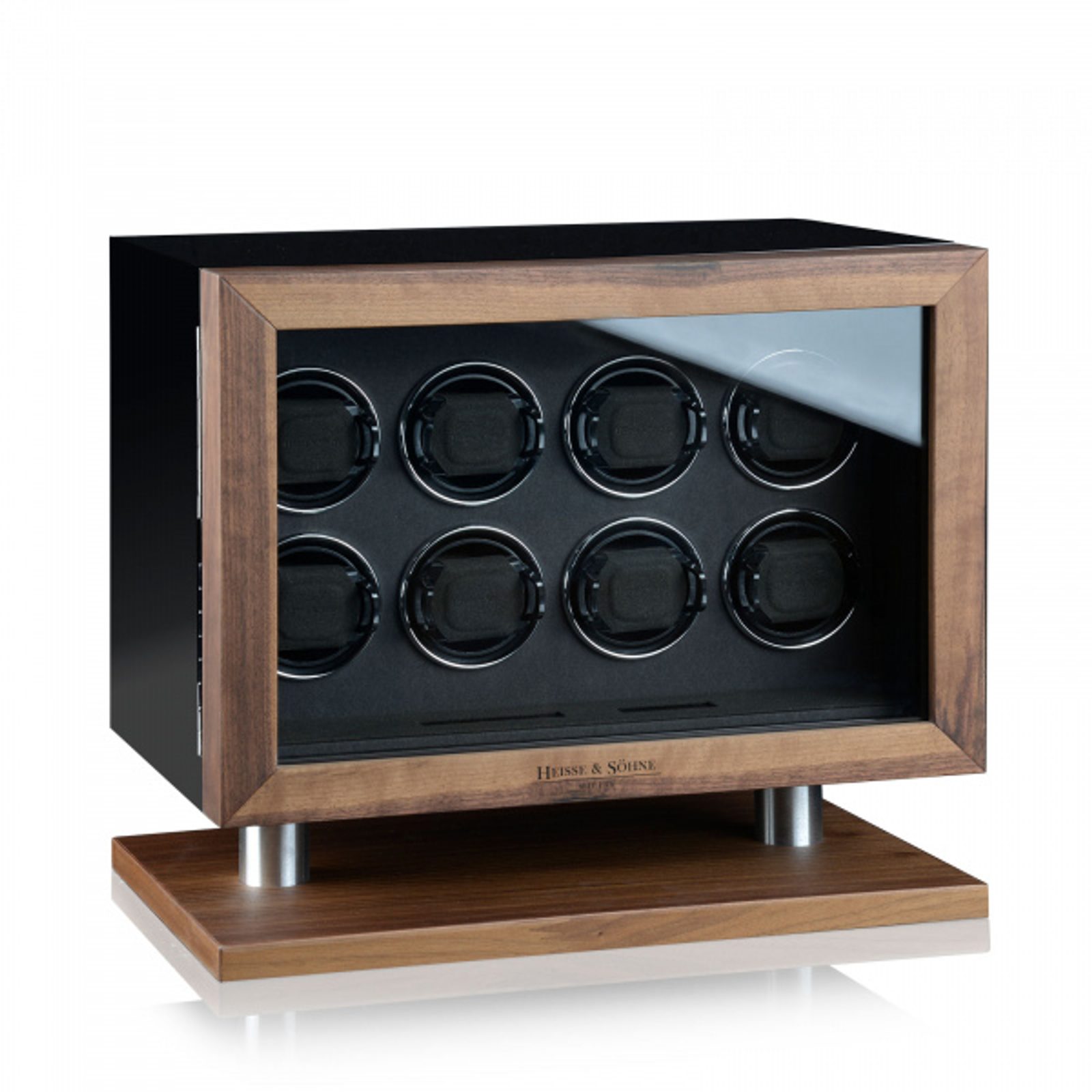 Natahovač Heisse & Söhne New York 8 70019-236.10 pro 8 kusů mechanických hodinek s automatickým nátahem. Natahovač je černé barvy v kombinaci s hnědou, LCD display pro příjemné ovládání, materiál interiéru je velur v černé barvě.