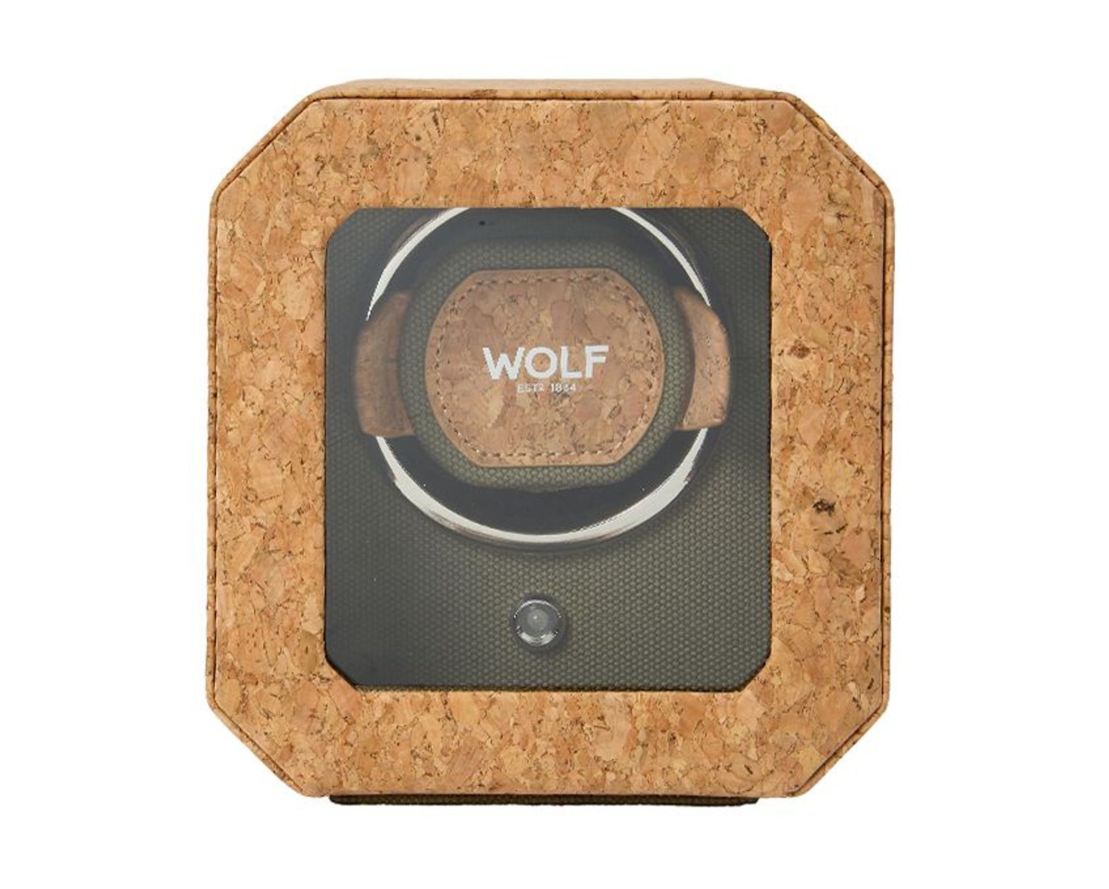 Natahovač Wolf Cortiça 668161 hnědé barvy, pro 1 kus mechanických hodinek s automatickým nátahem. Natahovač byl navržen tak, aby se do něj vešly i větší hodinky (pouzdro až 52 mm).