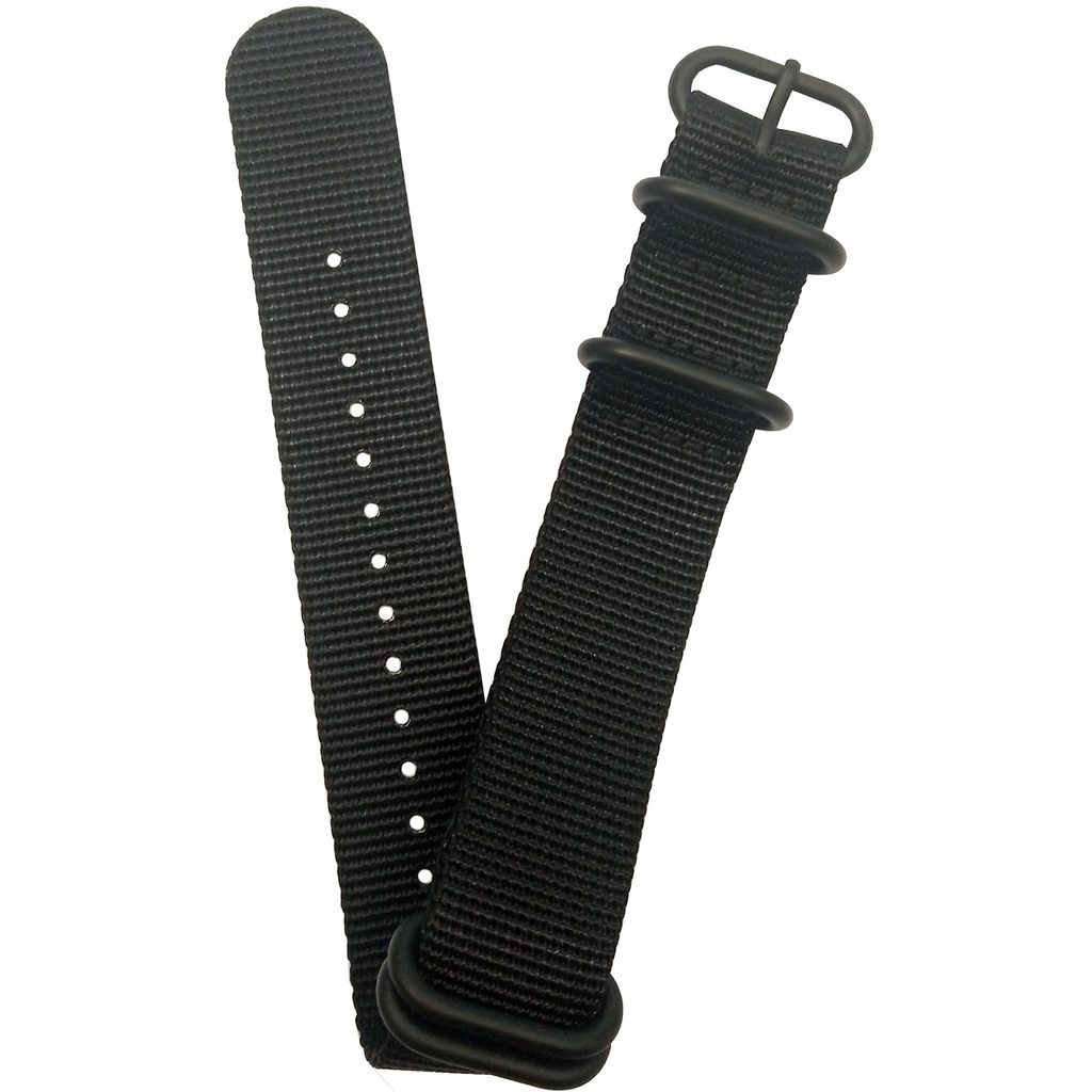Hrubý a odolný nylonový ZULU řemínek se liší od Nato hrubší tkaninou a zesílenou konstrukcí kovového zapínání, které je z pískované nerez oceli. V šířce 22 mm z nylonového materiálu v černé barvě.