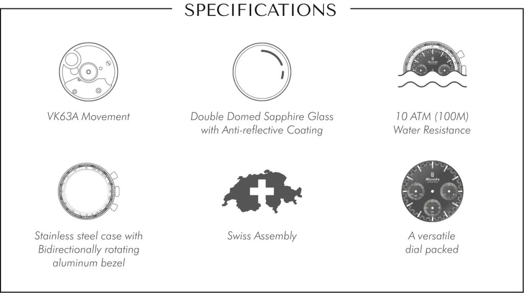 Nivada Chronoking je osazen osvědčeným strojkem TMI VK63A mecaquartz. Stisknutím tlačítka se chronografová ručička hladce pohybuje po ciferníku s tou samou jemností, kterou milujeme u mechanických hodinek. Mecaquartz strojek kombinuje přesnost quartzového mechanismu s pocitem mechanického strojku – nejlepší z tradičního a avantgardního designu. Quartzová část udržuje čas, zatímco mechanická část zajišťuje plynulý chod chronografu. Právě díky tomu jsou často označovány jako hybridní mechanismy.