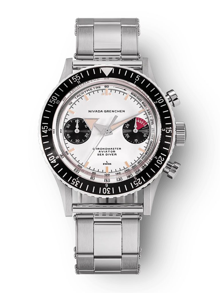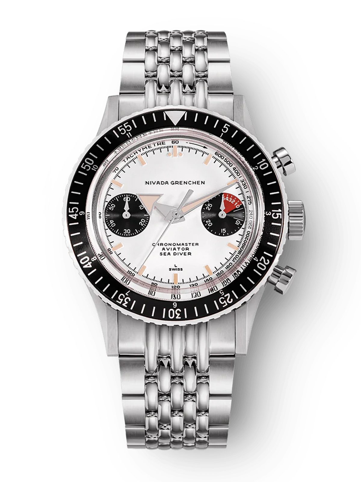 Nivada Grenchen, založená ve městě Grenchen ve Švýcarsku v roce 1926, je značka, která byla známá svými hodinářskými inovacemi v 50. a 60. letech s jejich legendárními kolekcemi Antarctic & Chronomaster Aviator Sea Diver. Dnes, téměř o století později, restartovali Nivadu Grenchen s cílem přivést zpět k životu dědictví a designy, které tehdy Nivadu vytvářely.