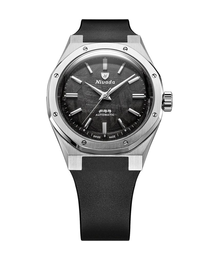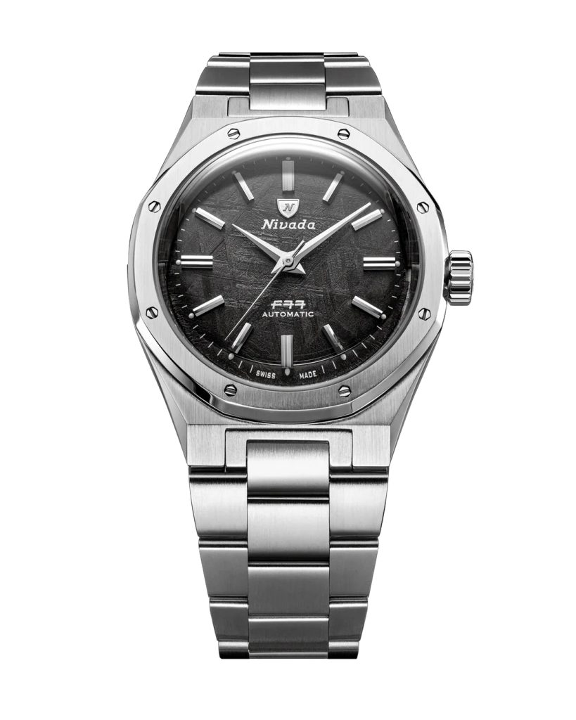 Srdcem modelu F77 je autentický číselník z meteoritu, který vyniká jedinečnými kovově šedými geometrickými vzory. Každý číselník je originál, takže žádné dvoje hodinky nejsou totožné. Tento design přináší na zápěstí dotek vesmíru a zároveň vzdává hold jeho nekonečné rozlehlosti.