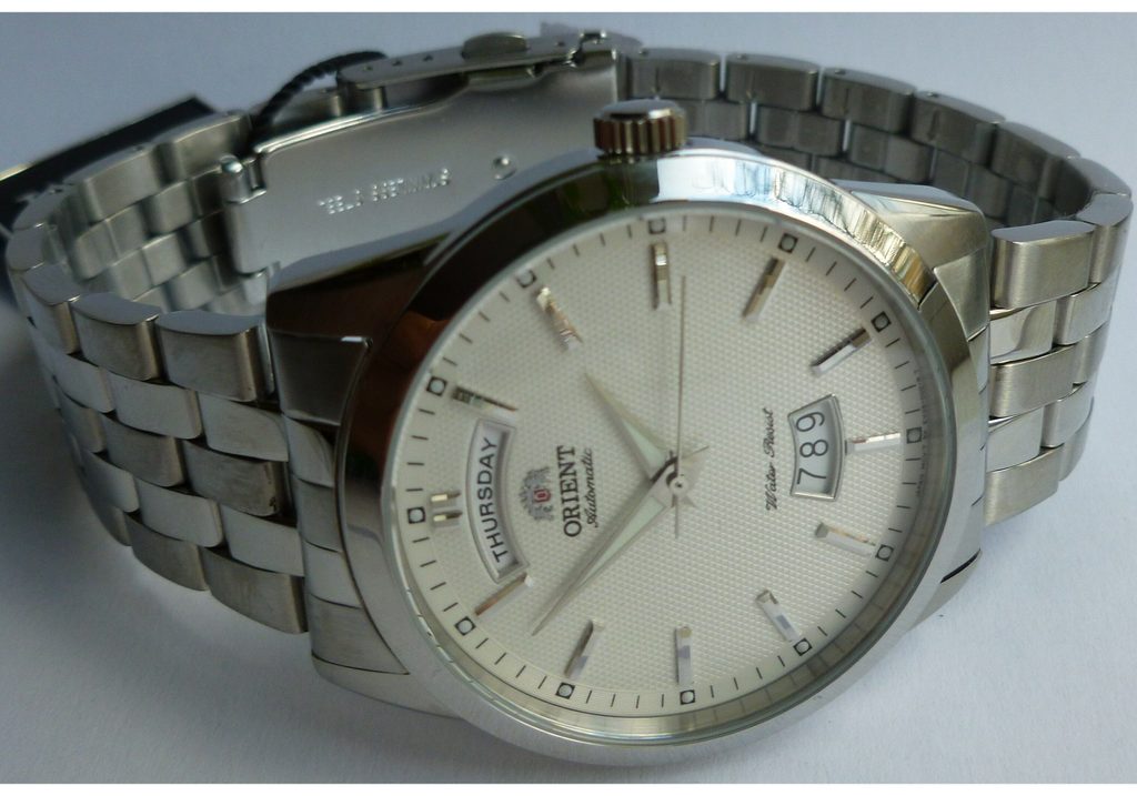 Pouzdro hodinek Orient EV0S003W je vyrobeno z ušlechtilé oceli a skrývá v sobě mechanický strojek Orient 46E40 s 21 kameny. Ten pracuje na frekvenci 21600 polokmitů za hodinu a nabízí funkci ukazatele data na pozici 6. hodiny a dne na protilehlé 12. hodině. Elegantnost tohoto modelu dokresluje použitý ocelový náramek, který výborně ladí s designem pouzdra. Při zhoršených světelných podmínkách jistě oceníte aplikaci luminiscenční vrstvy na ručky a indexy.