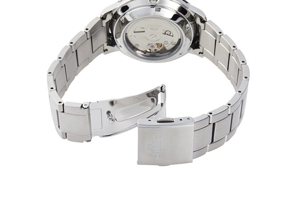 Pouzdro hodinek Orient RA-AC0E01B30B je vyrobeno z ušlechtilé oceli a v jeho nitru najdeme mechanický strojek Orient F6722, který je opatřen automatickým nátahem a rezervou chodu 40 hodin. Tento strojek disponuje také funkcí data, u nějž potěší použití tmavého věnce se světlým potiskem, možností ručního nátahu a zastavením sekundové ručky při nařizování hodinek (tzv. hackingem). Činnost strojku, pracujícího na frekvenci 21600 polokmitů/hod. lze pozorovat díky průhlednému dýnku.
