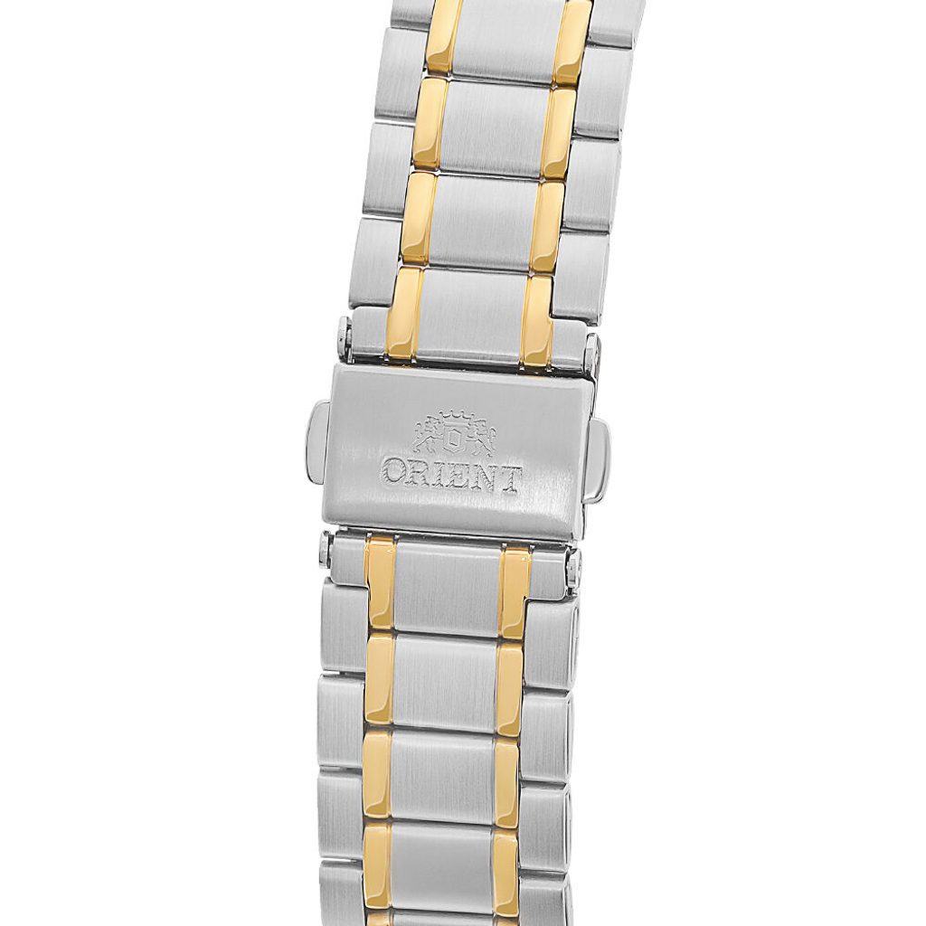 Model Orient Contemporary RF-QD0010S10B pohání bateriový strojek VT321 z dílny Orient. Bílý číselník, s vyobrazením data na pozici třetí hodiny, chrání minerální sklíčko. Ocelové pouzdro v kombinaci s ocelovým náramkem v barevném provedení bicolor, přidává hodinkám na univerzálnosti a praktičnosti. Předností hodinek je skvělá přehlednost daná použitím výrazných indexů a ruček. Vodotěsnost tohoto modelu je 30 m, hodinky tak snesou kontakt s vodou při mytí rukou, dešti. Díky průměru pouzdra 39 mm jsou řazeny mezi středně velké hodinky, které budou vyhovovat většině pánských zápěstí.