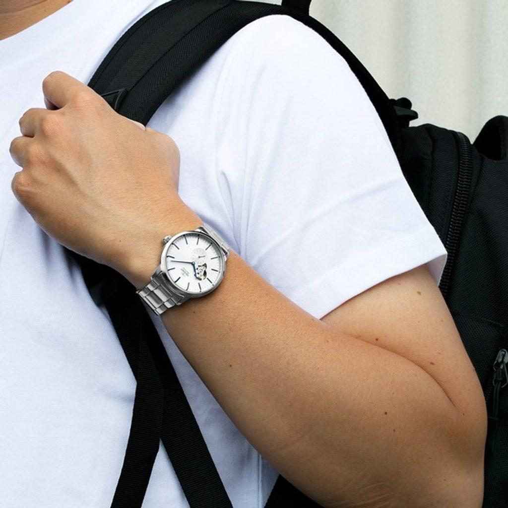 Jednoduchý, bílý, výborně přehledný číselník je chráněn minerálním sklíčkem. Majitele potěší detaily v podobě plastických indexů na hodinových pozicích, či modřených ruček vynikajících na světlém podkladu. Voděodolnost tohoto modelu je 100 m, hodinky tedy není nutné sundavat při sprchování, ani při plavání. Hodinky jsou dodávány na ocelovém náramku s překlápěcí sponou. Díky průměru pouzdra 40 mm potěší tento model i pány, hledající rozměrově menší hodinky.