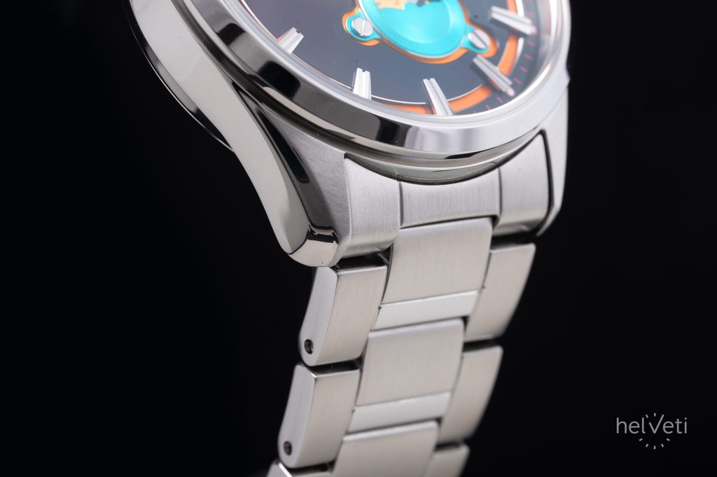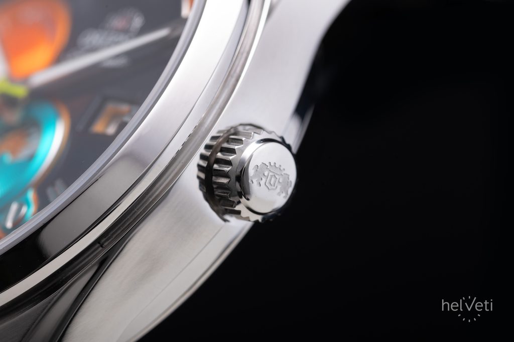 Hodinky zaujmou výrazným barevným schématem číselníku. Kontrastní aplikované indexy na hodinových pozicích vhodně doplňují také výrazné ručičky. Chráněn je safírovým sklíčkem s vysokou odolností proti poškrábání. Pro lepší čitelnost při zhoršených světelných podmínkách jsou hodinky vybavené luminiscenční výplní ruček a lumi body u indexů.