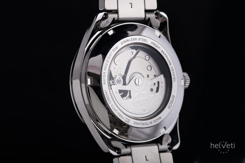 O pohon hodinek se stará mechanický strojek Orient F6B24 s automatickým nátahem a rezervou chodu 40 hodin. Samozřejmou funkcí je zastavení vteřinové ručky při nařizování času (tzv. hacking) a zajímavou komplikací je ukazatel denní doby na pozici 5. hodiny, s diskem ukazujícím výjev Měsíce a Slunce. Netradiční je také ukazatel dne v subčíselníku na pozici 10. hodiny, nechybí ani zobrazení data u 3. hodiny. Činnost strojku, pracujícího na frekvenci 21600 polokmitů/hod., lze pozorovat díky průhlednému dýnku.
