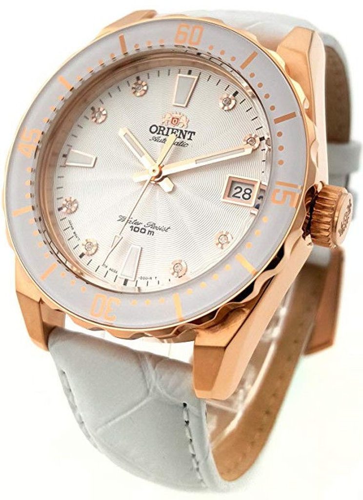 Voděodolnost tohoto modelu je 100 m, hodinky můžete vzít po výměně řemínku nejen do sprchy, ale i na plavání. Vodotěsnost je pojištěna šroubovací korunkou a dýnkem. Ciferník je chráněn minerálním sklíčkem. Hodinky Orient AC0A003W jsou dodávány na bílém koženém řemínku s krokodýlím vzorem a díky průměru pouzdra 39 mm jsou vhodnou variantou pro dámy hledající sportovně laděný kousek.