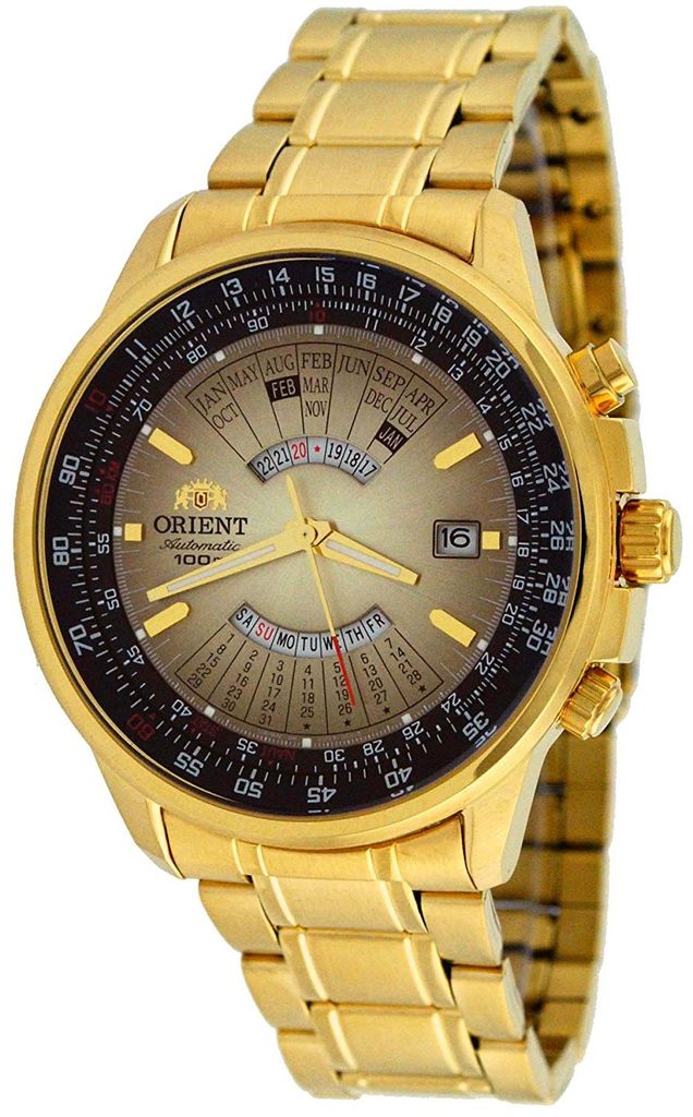 Ciferník, kterému dominuje hlavně výše zmíněný víceletý kalendář, je chráněn minerálním sklem. Voděodolnost tohoto modelu je 100 m, kontakt s vodou jako sprcha či plavání pro něj tedy není problém. Hodinky Orient FEU00008B jsou dodávány se stylovým ocelovým náramkem s PVD úpravou, který vhodně ladí k designu pouzdra. Průměr pouzdra 42 mm je řadí mezi průměrně velké hodinky, padnou tedy výborně na většinu pánských zápěstí.