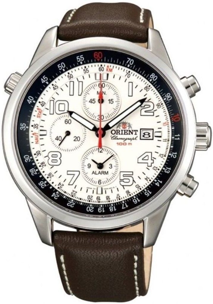 Hodinky Orient FTD0900AW disponují japonským bateriovým strojkem Orient KFA00 s funkcí chronografu, tedy stopek. Na tradiční pozici 3. hodiny pak nejdeme ukazatel data, velmi praktická je také funkce alarmu, kterou lze hledat v subciferníku na pozici 6. hodiny. Po obvodu přehledného číselníku, chráněného safírovým sklíčkem, se nachází logaritmické pravítko, ovládané pomocí korunky na pozici 10.