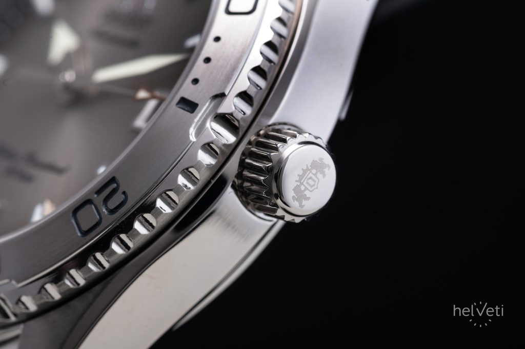 K měření času nejen pod vodou poslouží jednosměrně otočná nerezová luneta, výrazné indexy a ručky s luminiscencí pak zajišťují výbornou čitelnost nejen za světla, ale také tmy.