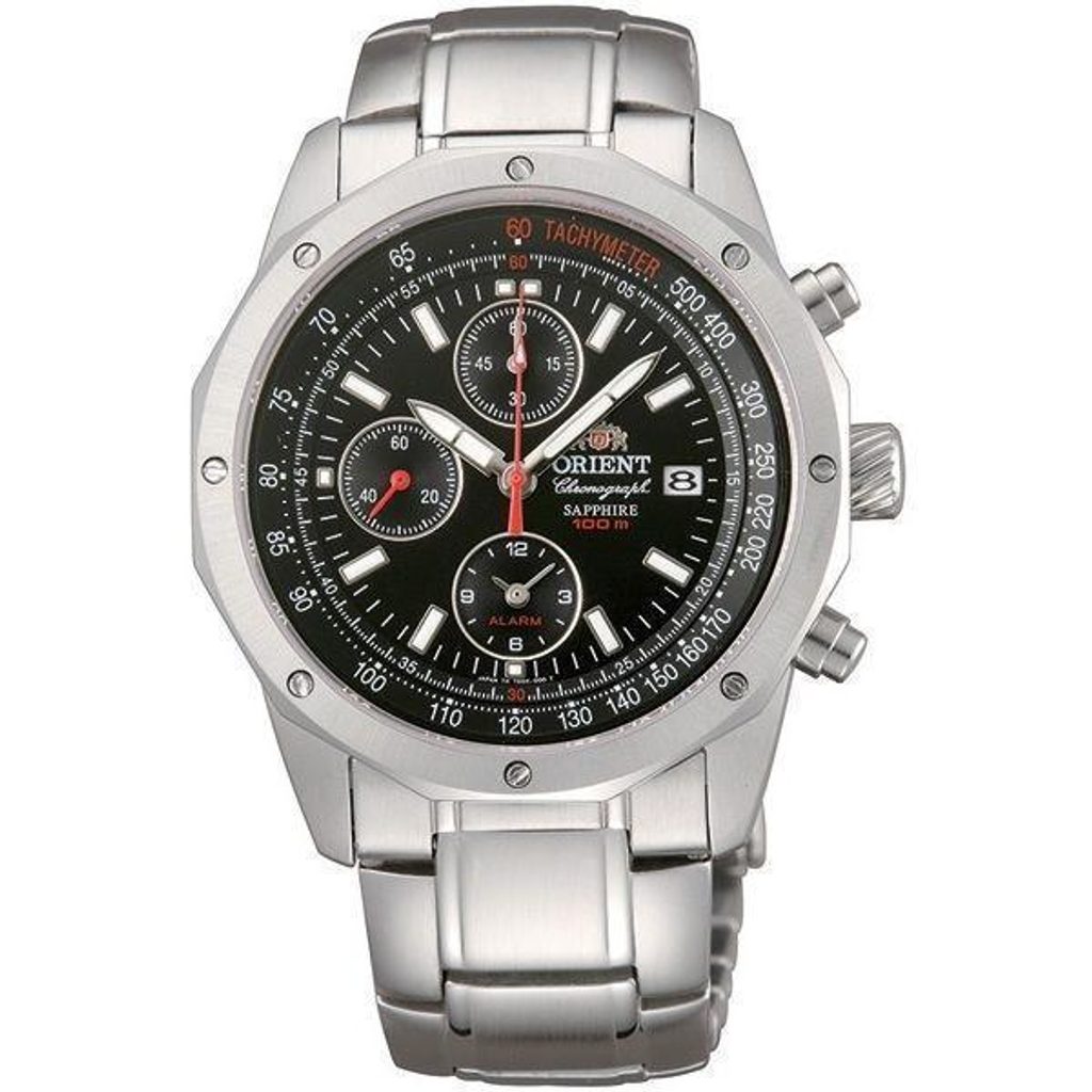 Hodinky Orient TD0X003B pohání japonský bateriový strojek Orient KFA00 s funkcí stopek. Na tradiční pozici 3. hodiny nejdeme ukazatel data, velmi praktická je také funkce alarmu. Po obvodu přehledného číselníku, který je chráněn safírovým sklíčkem, se nachází tachymetrická stupnice. Ta slouží k určení průměrné rychlosti po překonání 1 kilometru.