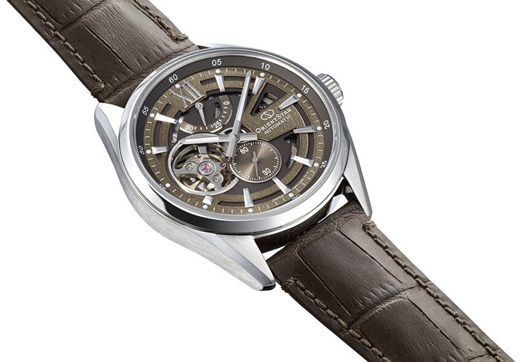 Orient Star Contemporary RE-AV0139Y Modern Skeleton navazují na popularitu modelů se skeletonovým číselníkem a přichází s výraznějším prořezáváním číselníku, průhledem na setrvačku a zvětšeným subčíselníkem vteřinové ručky na pozici 6. hodiny.