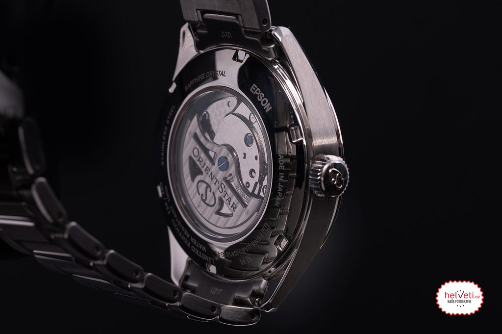 Hodinky vynikají úrovní zpracování, nezaměnitelným designem, liniemi a detaily pouzdra i číselníku. Pouzdro hodinek Orient RE-BX0002S00B je vyrobeno z ušlechtilé oceli, jeho povrch je upraven speciální metodou leštění Sallaz, které se také jinak označuje jako černé leštění, protože leštěný povrch je tak dokonale hladký, že se z určitého úhlu jeví jako černý. V jeho nitru najdeme mechanický strojek Orient F8N64 s rezervou chodu 60 hodin a vysokou přeností +15 až –5 s/ den. Tento strojek disponuje také funkcí data, zastavením sekundové ručky při nařizování hodinek (tzv. hackingem) a zajímavou komplikací je ukazatel rezervy nátahu na pozici 12. hodiny. Činnost strojku, pracujícího na frekvenci 21600 polokmitů/hod. lze pozorovat také díky průhlednému dýnku. Překvapí jemnou perláží, modřenými šroubky a rotorem zdobeným ženevskými pruhy. Dýnko chrání safírové sklíčko.