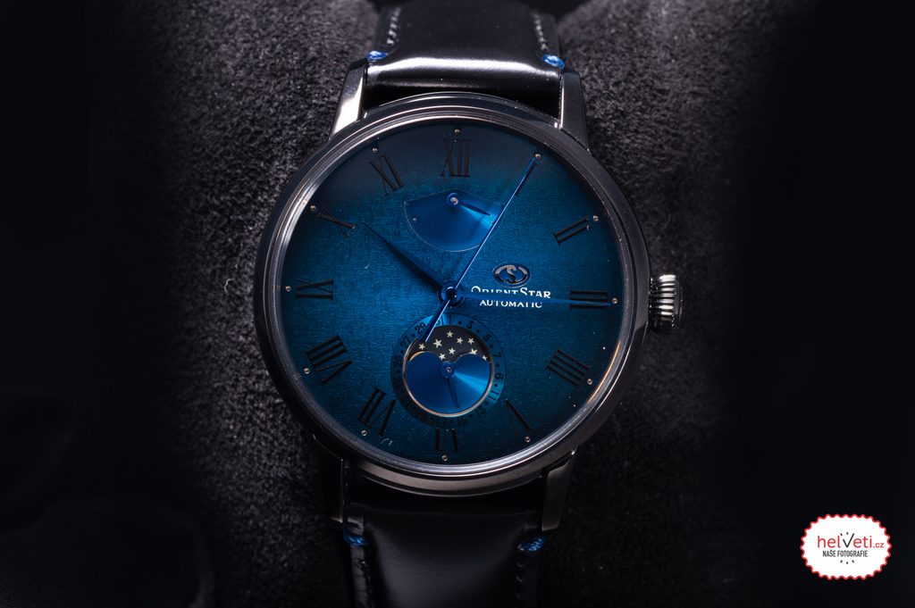 Hodinky Orient Star RE-AY0119L Classic Moon Phase M45 F7 Limited Edition nabízí nevšední avšak čistý číselník a elegantní design, díky kterému jsou hodinky vhodným doplňkem ke košili, či saku. Skvělé jsou ovšem i pro běžné denní nošení.