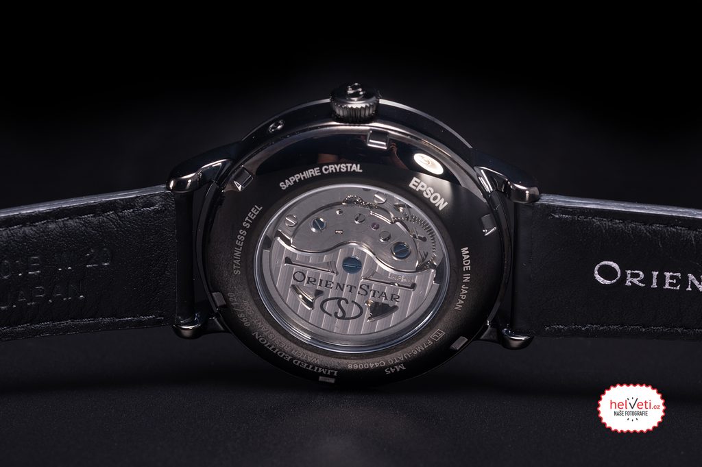 Pro číselníky Orient Star jsou charakteristické složité výrobní procesy a pokročilá technologie. U tohoto modelu jsou na povrch číselníku nejdříve vyraženy vzory, které představují hvězdy. Jemné vzory mění podobu v závislosti na úhlu, ze kterého na plochu dopadá světlo a vytváří scénu třpytivých hvězd. Poté se pomocí gradačního stroje nanese barva, aby se jemně upravila hustota a paleta barev, čímž se vytvoří tóny, které se mění z šedé ve středu číselníku po černou, která se objevuje směrem k vnějšímu okraji. Lakovaný povrch je poté potažen médiem, které dodává šedému číselníku hloubku noční oblohy.