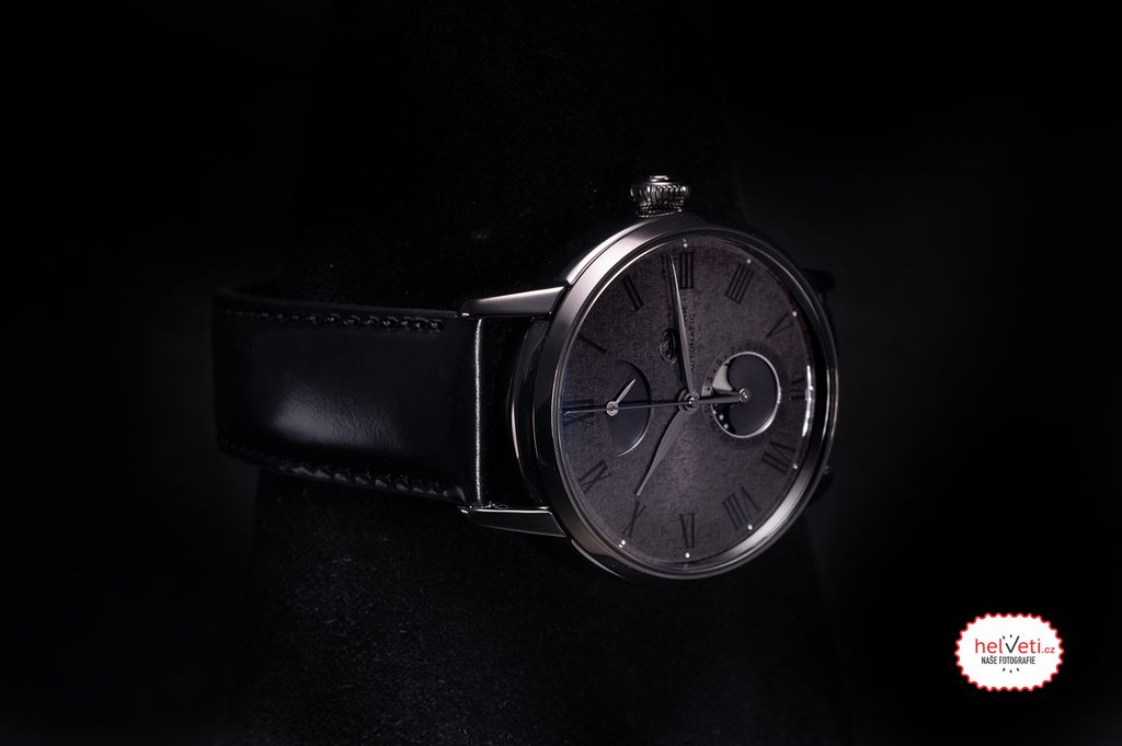 Nevšední šedý číselník, jehož barvě byl inspirací překryv souhvězdí Plejád Měsícem, vyniká dobrou přehledností, je chráněn safírovým sklem s oboustranným antireflexem. Majitele potěší krom speciálního číselníku také detaily v podobě ruček, aplikovaných číslic, signované korunky, či zpracování pouzdra a přechodů leštěných a broušených ploch. Voděodolnost tohoto modelu je 50 m, hodinky tedy bez problému odolají běžnému kontaktu s vodou, jako je déšť, výjimečně sprcha. Pouzdro doplňuje hladký černý řemínek z kůže cordovan, zakončený překlápěcí sponou. Díky průměru pouzdra 41 mm jsou hodinky vhodné pro většinu pánských zápěstí.