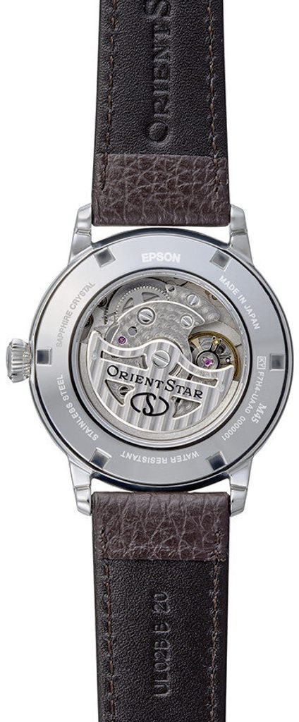 Hodinky vynikají úrovní zpracování, nezaměnitelným designem, elegantními liniemi a detaily pouzdra i číselníku. Ocelové pouzdro hodinek Orient RE-BS0002S00B doplňuje hnědý kožený řemínek s jemnou texturou, zakončený překlápěcí sponou.