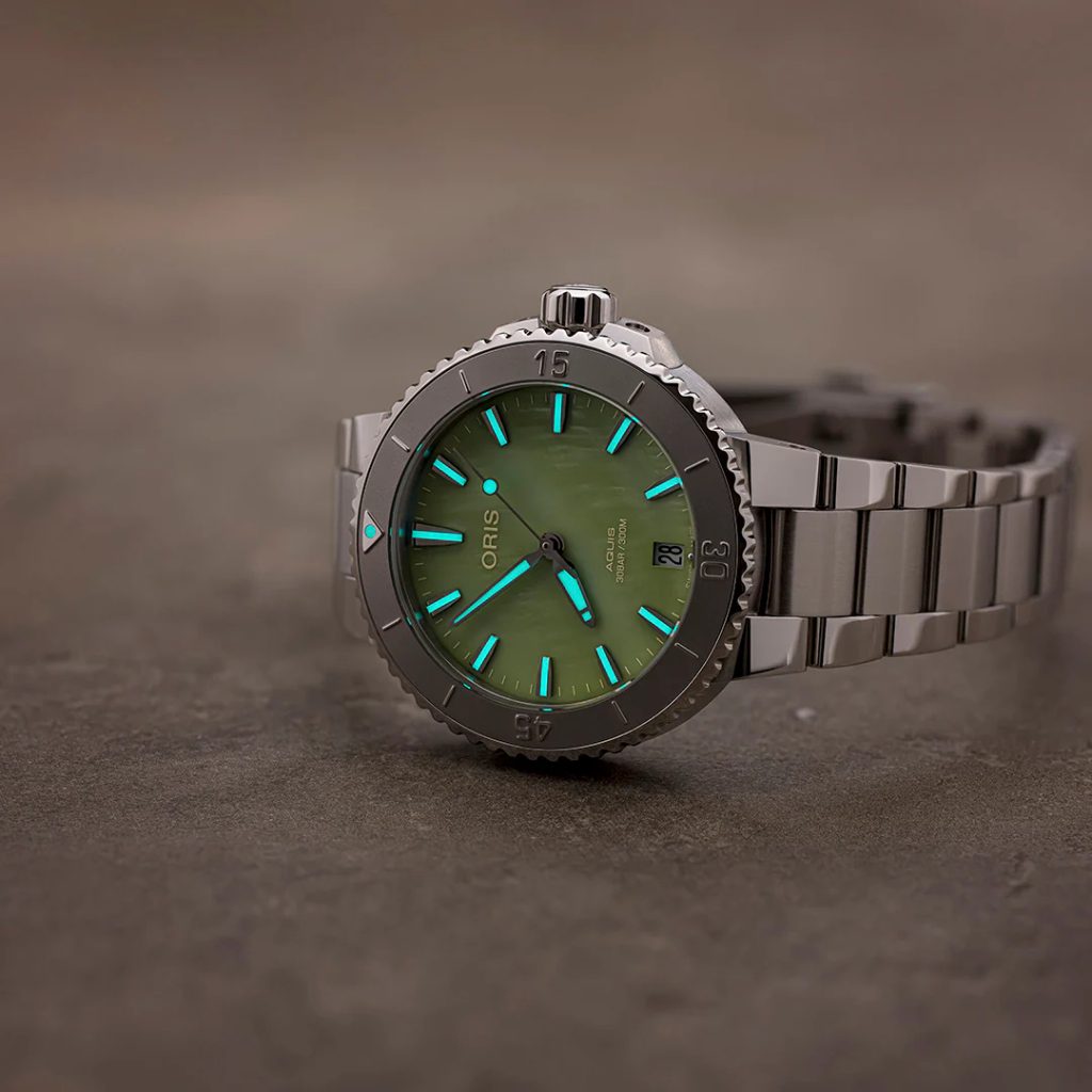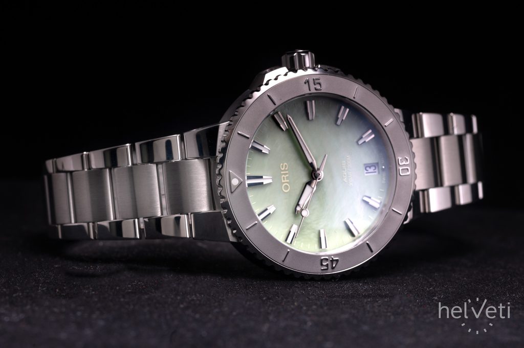 Dokonale přehledný perleťový číselník je chráněn klenutým safírovým sklíčkem, které je maximálně odolné vůči poškrábání. Čitelnost za ostrého světla pak zajišťuje vnitřní antireflexní vrstva. Ve tmě a snížených světelných podmínkách pak poslouží luminiscence Superluminova na ručkách a indexech. Voděodolnost těchto hodinek je 300 m (30 ATM), zvládnou tedy i kontakt s vodou, jako je potápění do cca 30 metrů. Odolnost proti vodě je podpořena šroubovací korunkou.