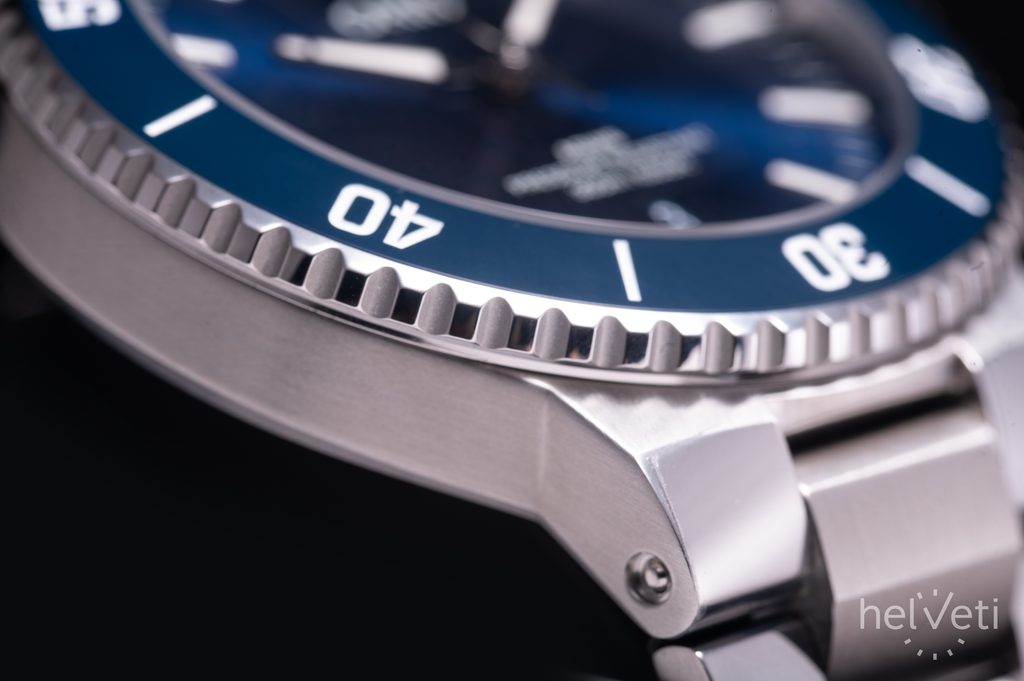 Dokonale přehledný číselník je chráněn klenutým safírovým sklíčkem, které je maximálně odolné vůči poškrábání. Čitelnost za ostrého světla pak zajišťuje vnitřní antireflexní vrstva. Ve tmě a snížených světelných podmínkách pak poslouží luminiscence Superluminova na ručkách a indexech. Voděodolnost těchto hodinek je 300 m (30 ATM), zvládnou tedy i kontakt s vodou, jako je potápění do cca 30 metrů. Odolnost proti vodě je podpořena šroubovací korunkou.