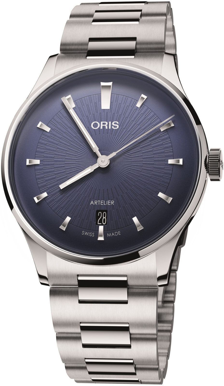 Pouzdro hodinek Oris Artelier Date 0173378104055-0782020 je vyrobeno z ušlechtilé oceli, stejně jako jejich náramek. Uvnitř pouzdra spolehlivě pracuje švýcarský mechanický strojek Oris 733 (základem je Sellita SW200-1) s automatickým nátahem. Tento strojek má v sobě 26 kamenných uložení a pracuje na frekvenci 28800 polokmitů za hodinu (4 Hz). Jeho činnost lze pozorovat díky průhlednému dýnku z minerálního skla. Na pozici 6 se nachází praktický ukazatel data.