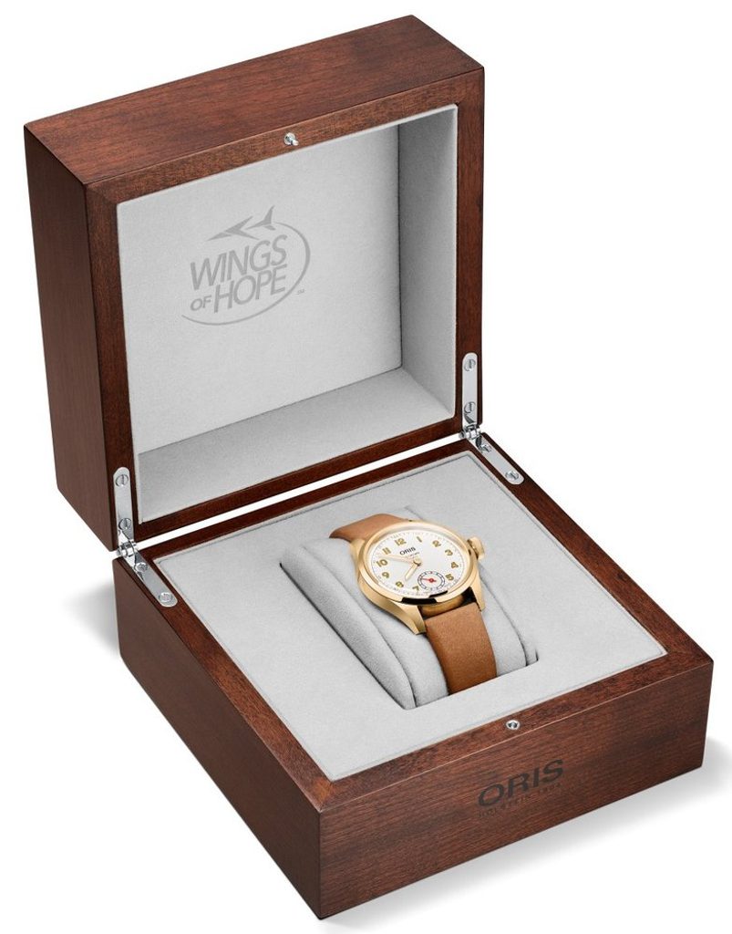 Švýcarské hodinky Oris Big Crown Calibre 401 Wings of Hope Gold Limited Edition 01 401 7782 6081-Set zaujmou svým atraktivním retro pilotním stylem a excelentním zpracováním. Tento model výborně poslouží nejen v oblacích, ale i při každodenním nošení. Tento model byl vyroben v limitované edici pouhých 100 kusů pro celý svět. Tato limitka je věnována humanitární organizaci Wings of Hope.