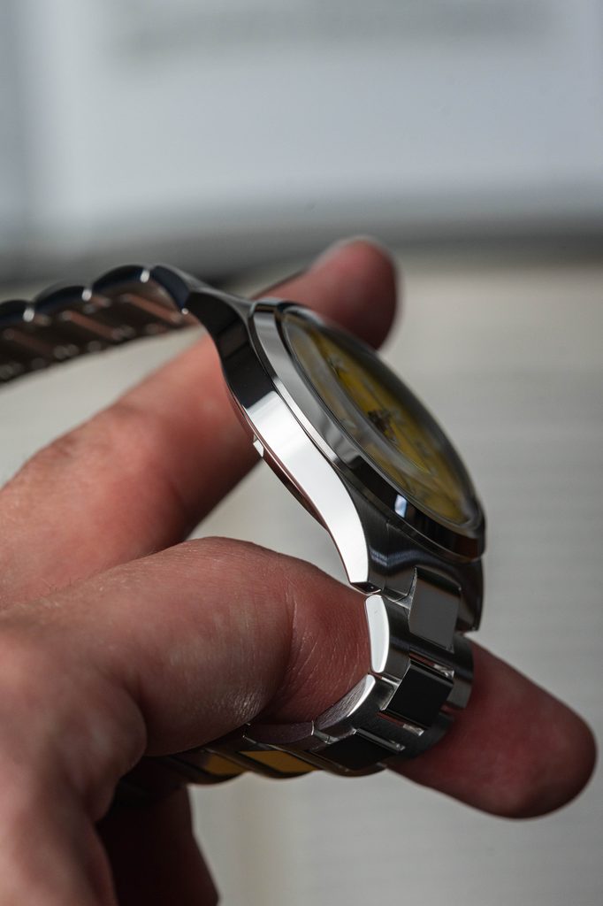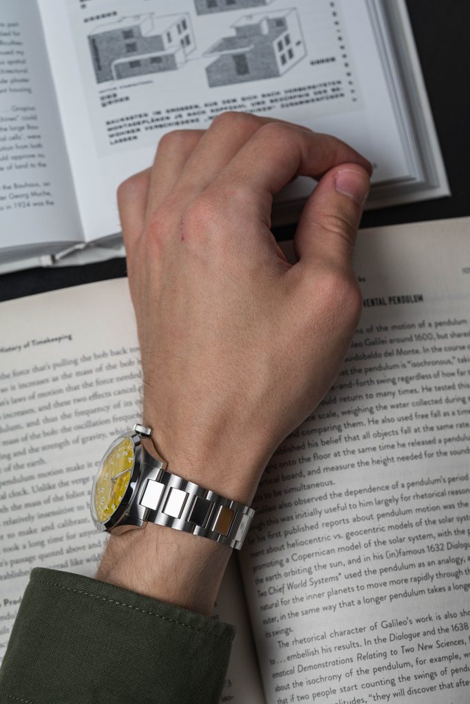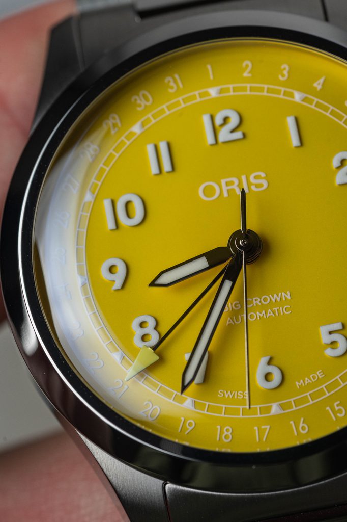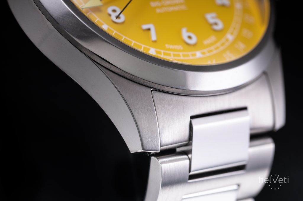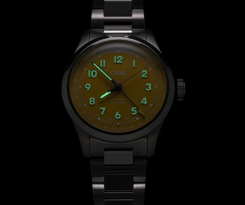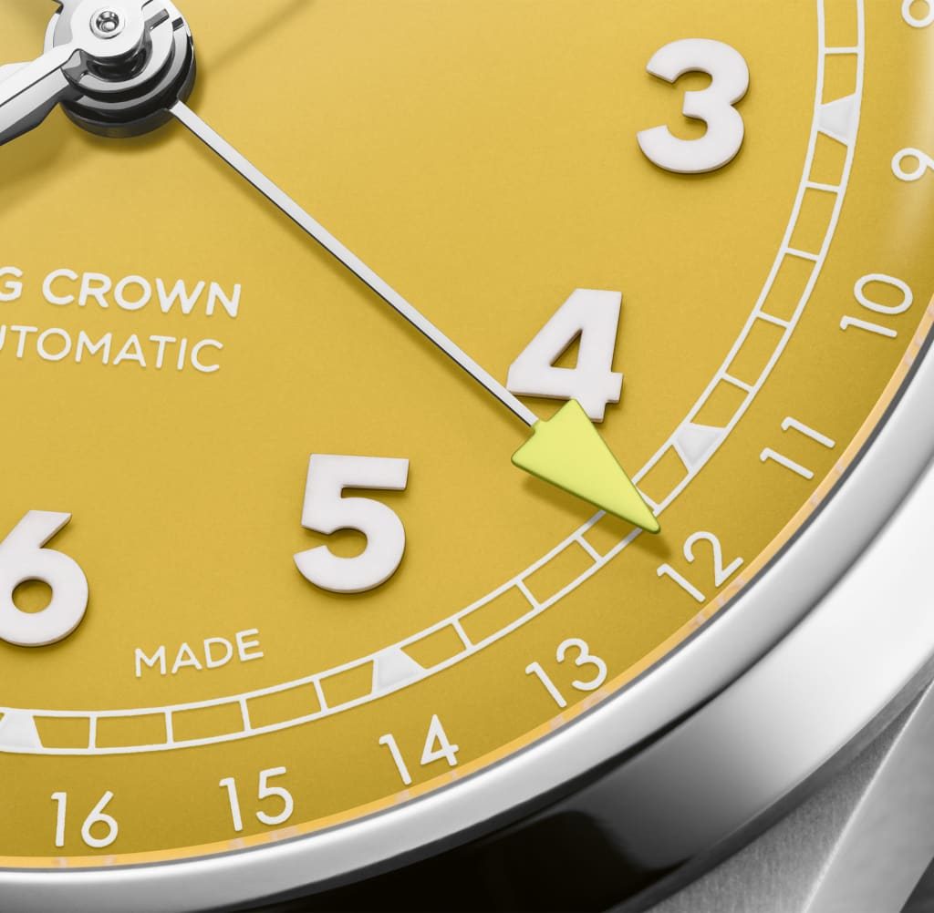 Dokonale přehledný číselník, vyvedený v retro pilotním stylu, je chráněn klenutým safírovým sklíčkem, které je maximálně odolné vůči poškrábání. Čitelnost za ostrého světla pak zajišťuje vnitřní antireflexní vrstva. Ve tmě a snížených světelných podmínkách pak poslouží luminiscence Superluminova na ručkách a indexech. Voděodolnost těchto hodinek je 50 m (5 ATM), zvládnou tedy i kontakt s vodou, jako je sprcha či déšť. Odolnost proti vodě je podpořena šroubovací korunkou.
