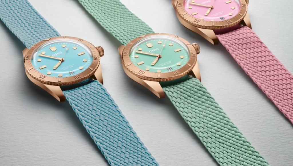 Švýcarské unisex hodinky Oris Divers Sixty-Five Cotton Candy 01 733 7771 3157-07 3 19 03BRS zaujmou svým retro "potápkovým" provedením a excelentním zpracováním. Tento model výborně poslouží nejen ve vodě, ale i při každodenním nošení. Zajímavostí tohoto modelu je bronzové provedení, které přináší patinování během nošení, díky čemuž je každý kus jedinečný.