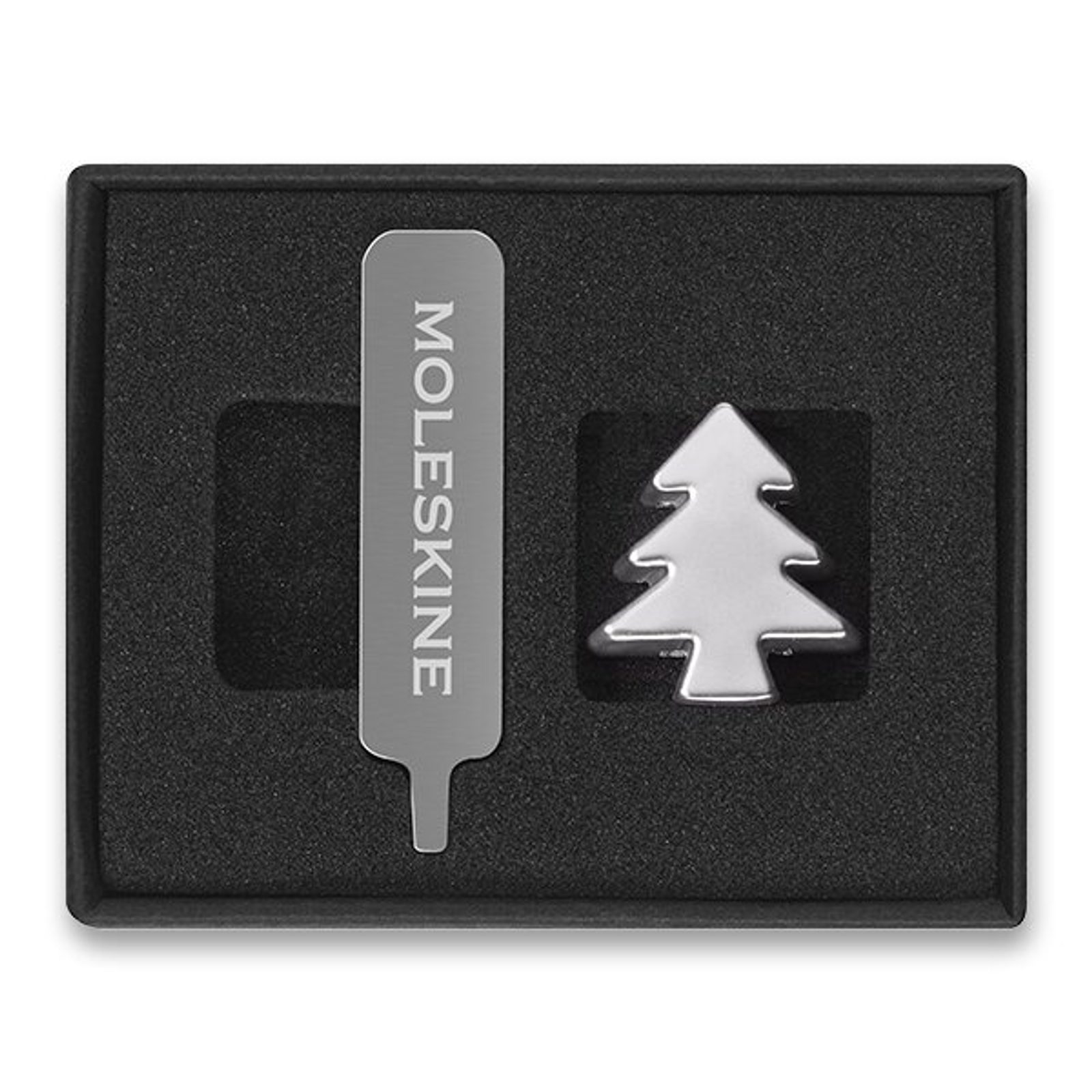 Originální ozdoba v podobě stříbrného stromečku je vyrobena ze slitiny zinku. Díky snadnému systému upevnění ji lze připevnit nejen na zápisník, ale také na diář Moleskine. Ozdoba se skvěle hodí jako dárek, který podpoří vánoční náladu, ale nezklame ani jako reprezentativní upomínkový předmět.