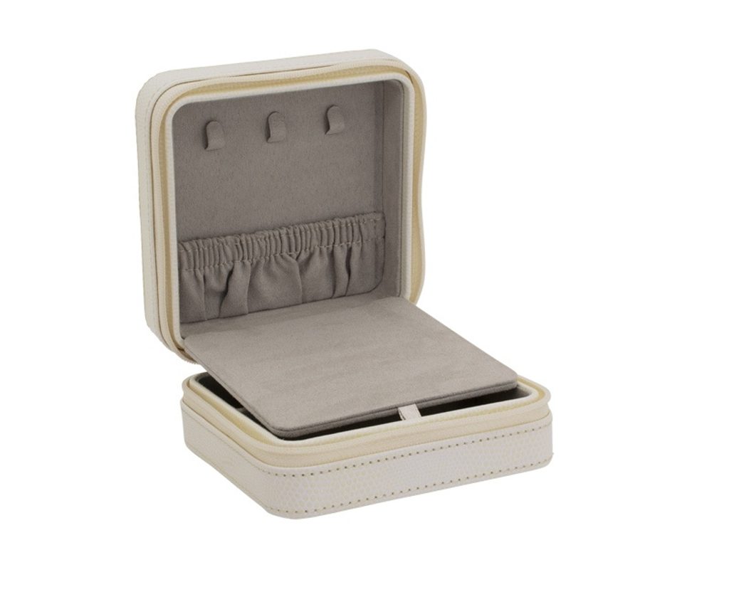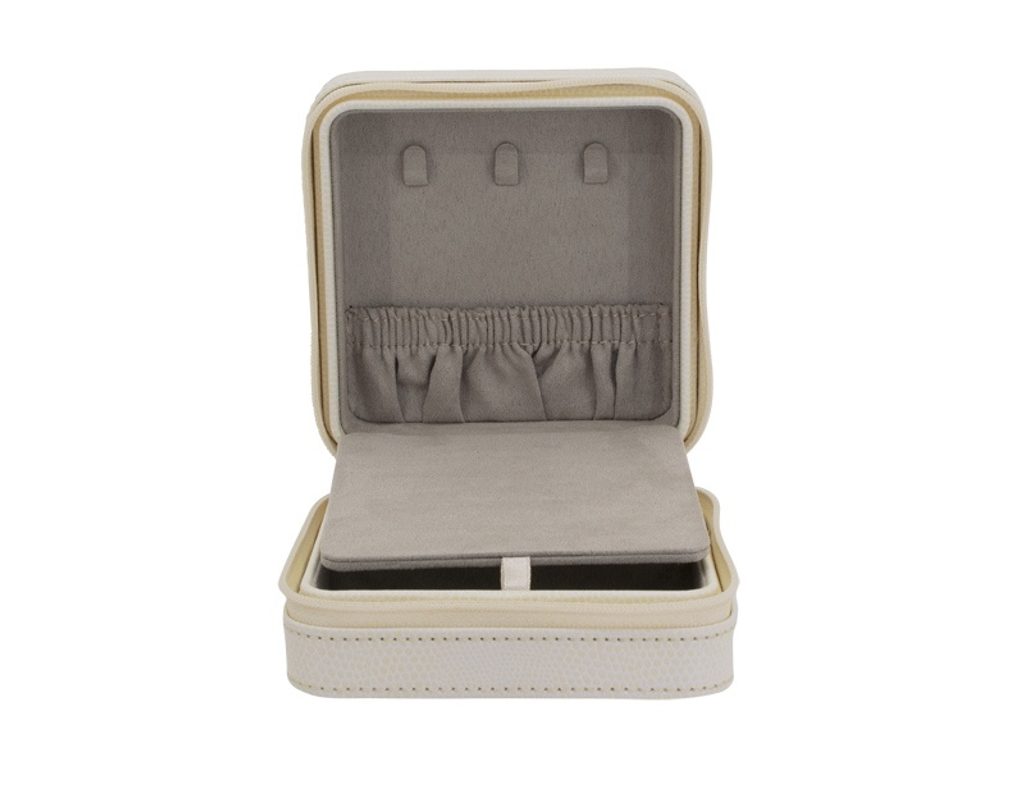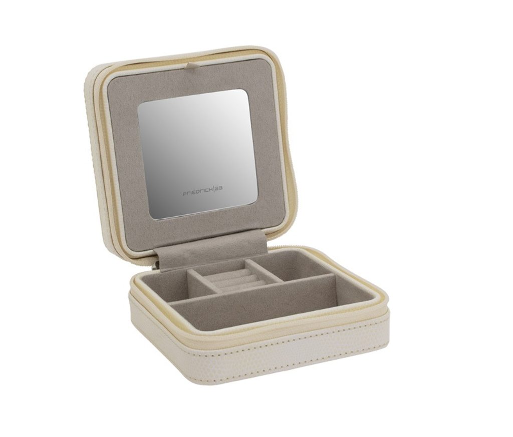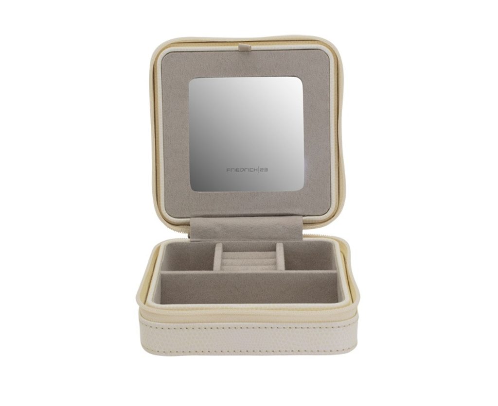 Cestovní šperkovnice Friedrich Lederwaren Milano 20143-9 béžové barvy, potažena syntetickou kůží se zavíráním na zip.