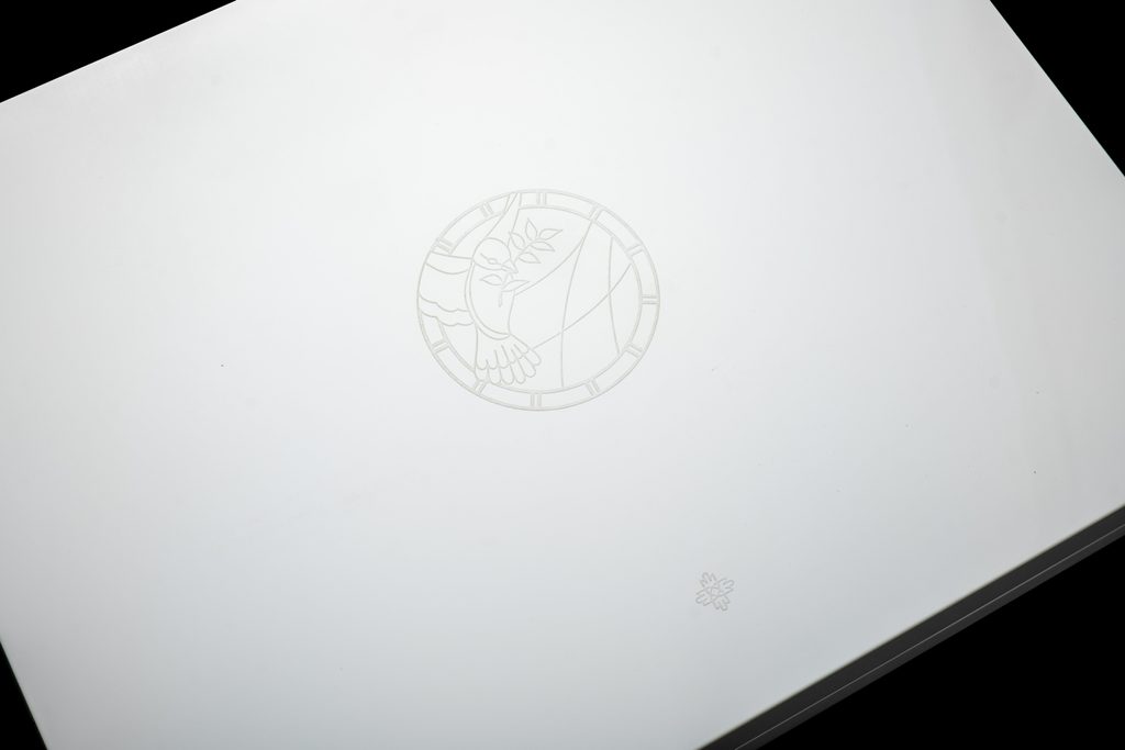 Do detailu propracovanou bílou holubici, které dodává plastičnost jemné stínování křídel, doplňuje na neobvyklém číselníku paleta modrých odstínů. Na číselník jsme použili technologii HyCeram, která je velmi náročná na čas a především preciznost. Přesné nanášení neboli vykrývání jednotlivých prvků různými barvami představuje více než 12 hodin soustředěné práce. Výslednou odměnou je kvalitní, vysoce odolný a barevně stabilní číselník kryje safírové sklíčko. Číselník je mistrovské dílo hodinářské manufaktury.