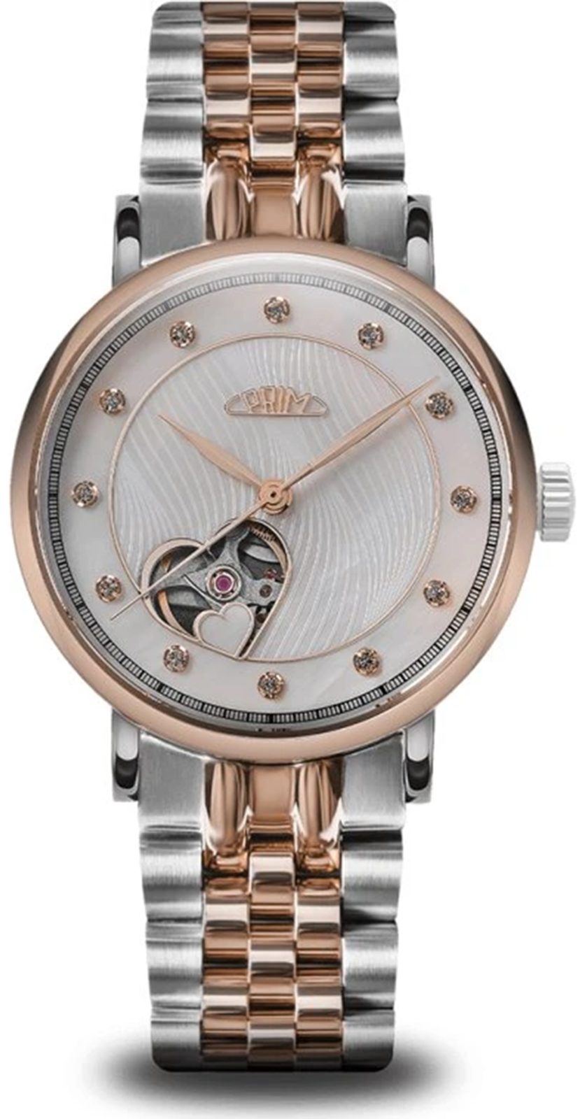 Objevte kouzlo PRIM Lady Love Elegant – dámských automatických hodinek s průzorem ve tvaru srdce, které spojují technickou preciznost s jemnou krásou krystalů Swarovski®. PRIM Lady Love Elegant představuje ztělesnění ženskosti, jemnosti a precizního hodinářského umění. Tento model byl navržen pro ženy, které chtějí svým stylem vyjádřit osobnost – s elegancí, která nikdy nevyjde z módy.