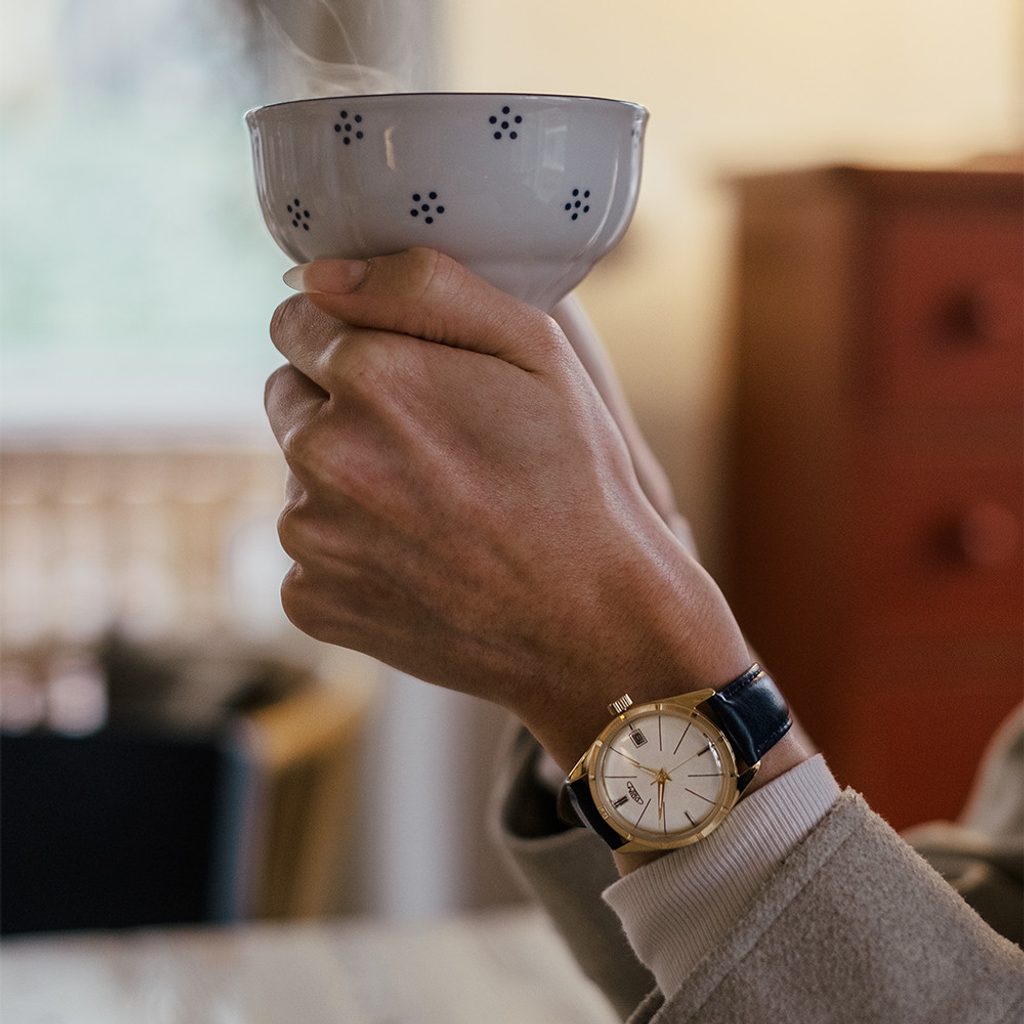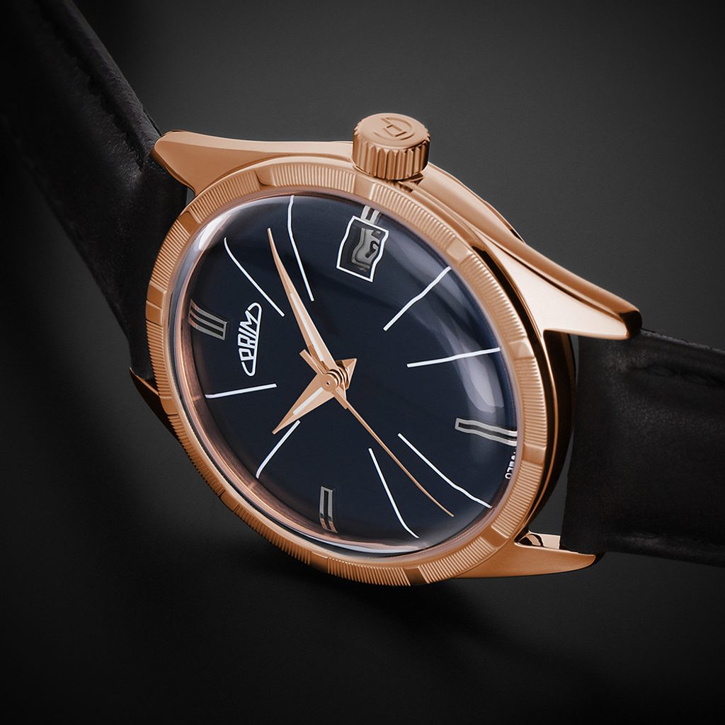 Originálem je zejména číselník v elegantním lakovaném provedení s tradičním motivem inspirovaným 60. léty stejně jako zdobení lunety jako tomu bylo zvykem u modelů vyráběných v minulosti.