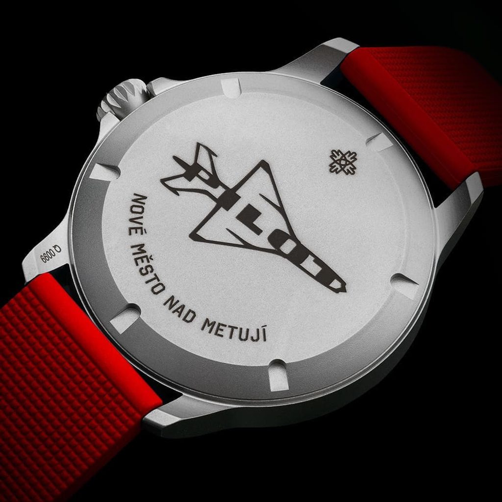 Hodinky pohání precizní quartzový strojek ETA F06.412. Komfort zajišťuje letecká korunka a kvalitní kaučukový řemínek.