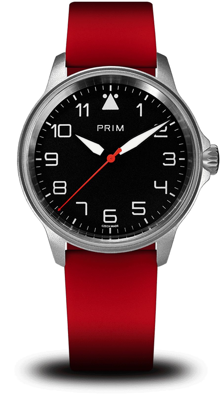 Na číselníku dominují výrazné číslice ve fontu PRIM a typický trojúhelníček s tečkami na pozici 12. Ručky s velkou luminiscenční plochou a výrazná sekundová ručka se šipkou zajišťují vynikající čitelnost i za zhoršených podmínek.