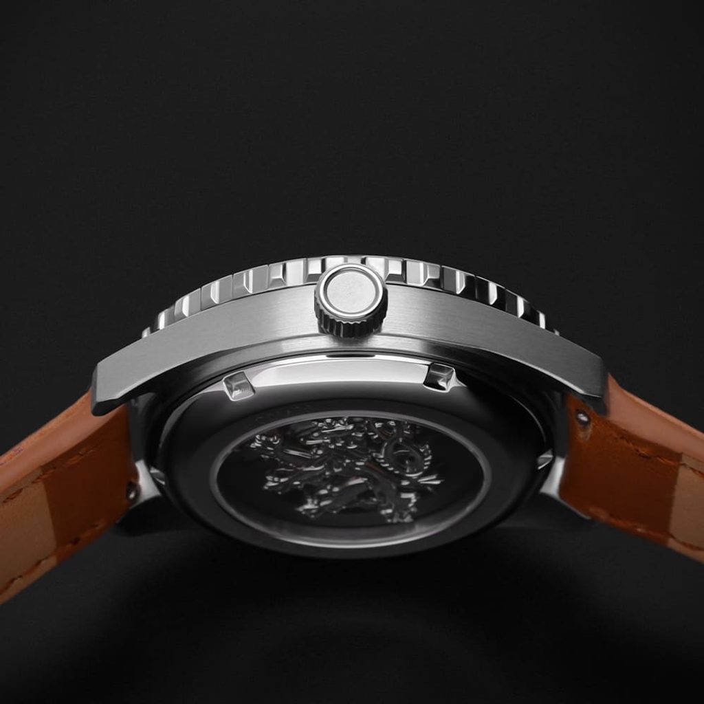 Pouzdro z ušlechtilé oceli, safírové sklo, ručky s luminescenčním nátěrem a šroubovací korunka. To je základ silných hodinek, které odolají vodě do 10 ATM.